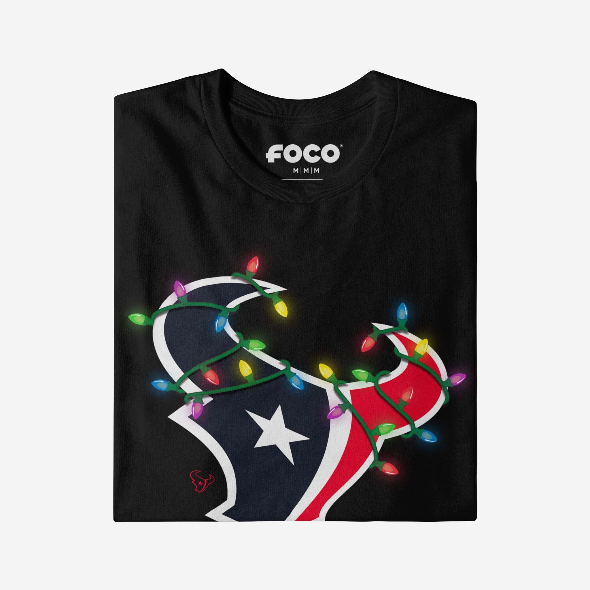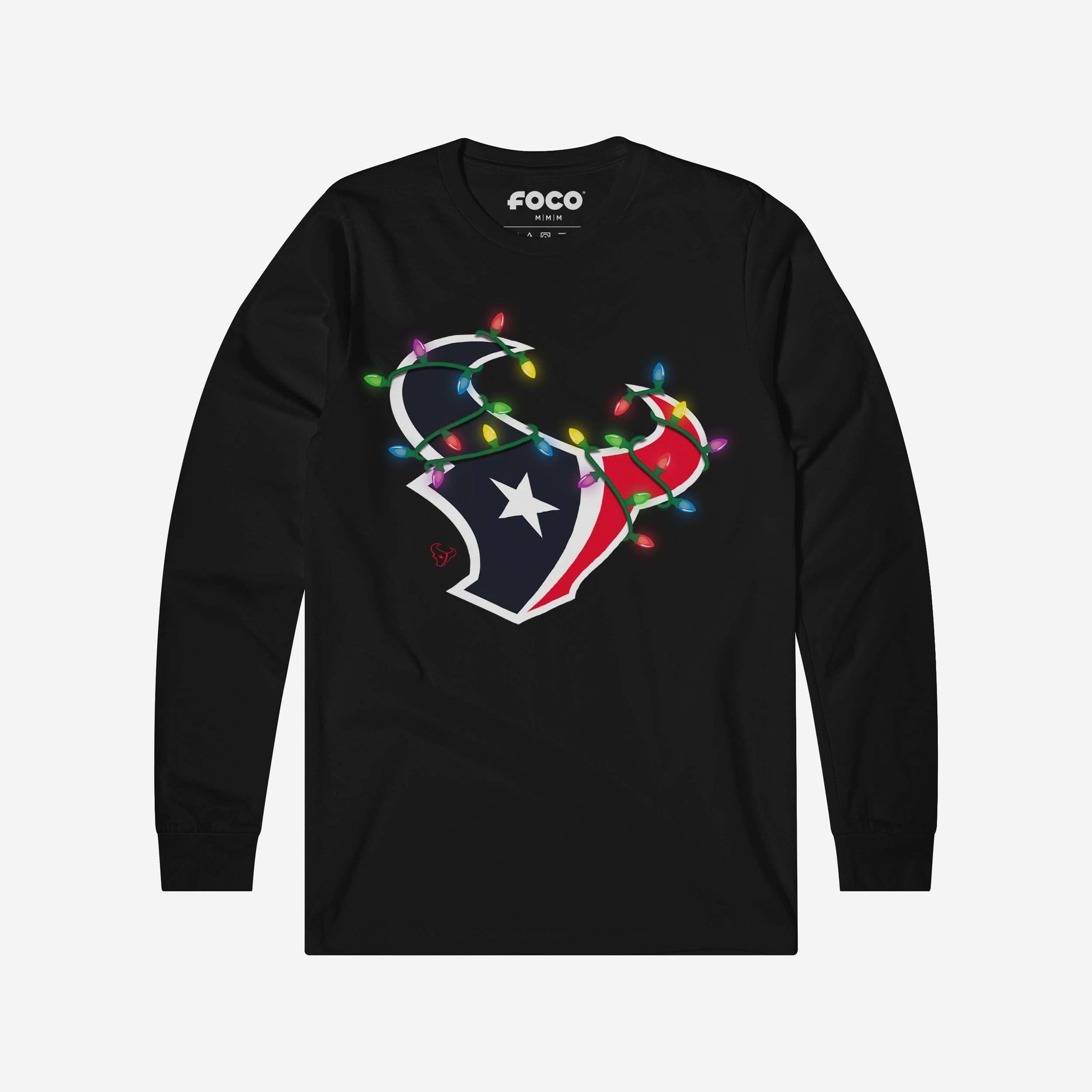 Houston Texans Primary Logo Holiday Lights Long Sleeve T-Shirt FOCO Black S - FOCO.com