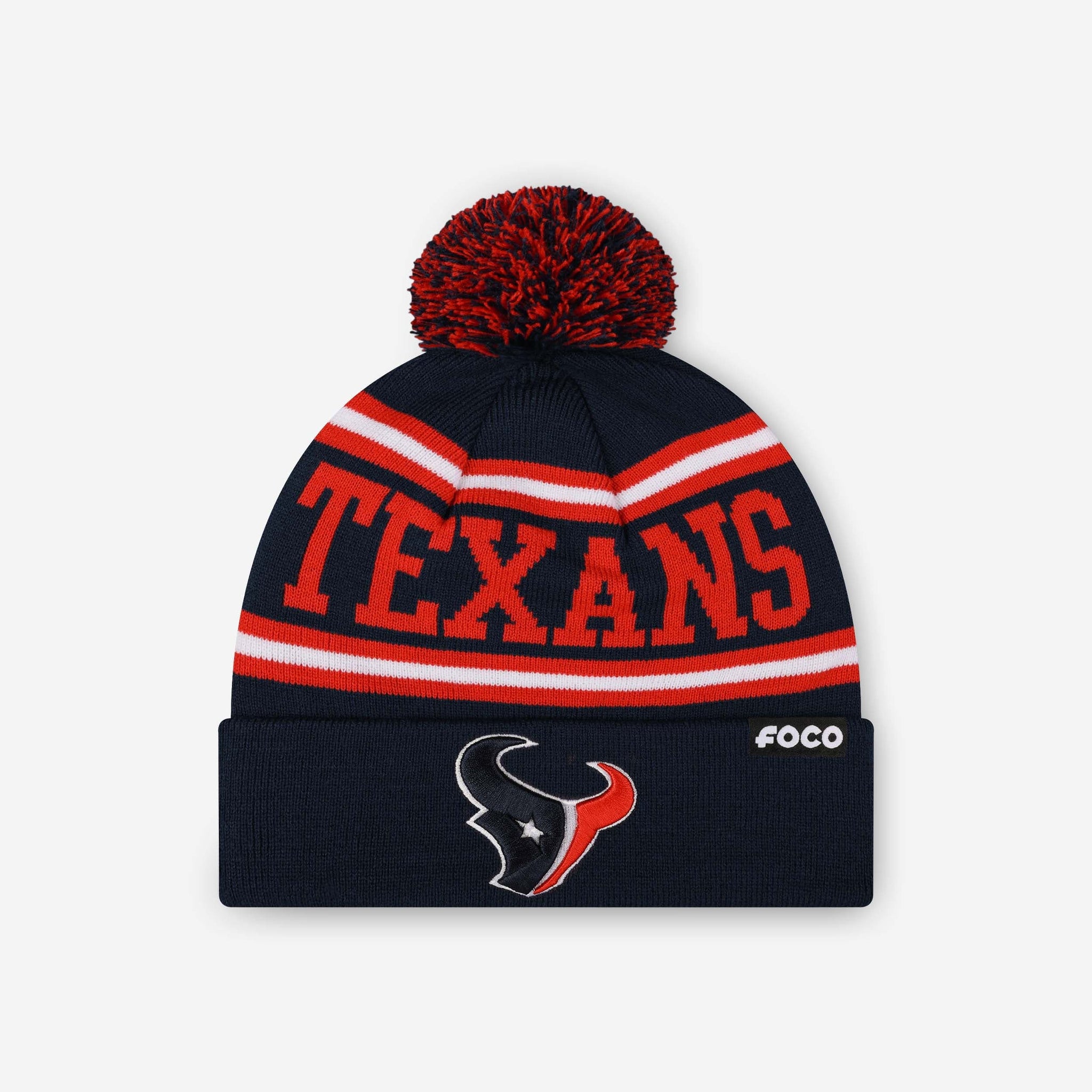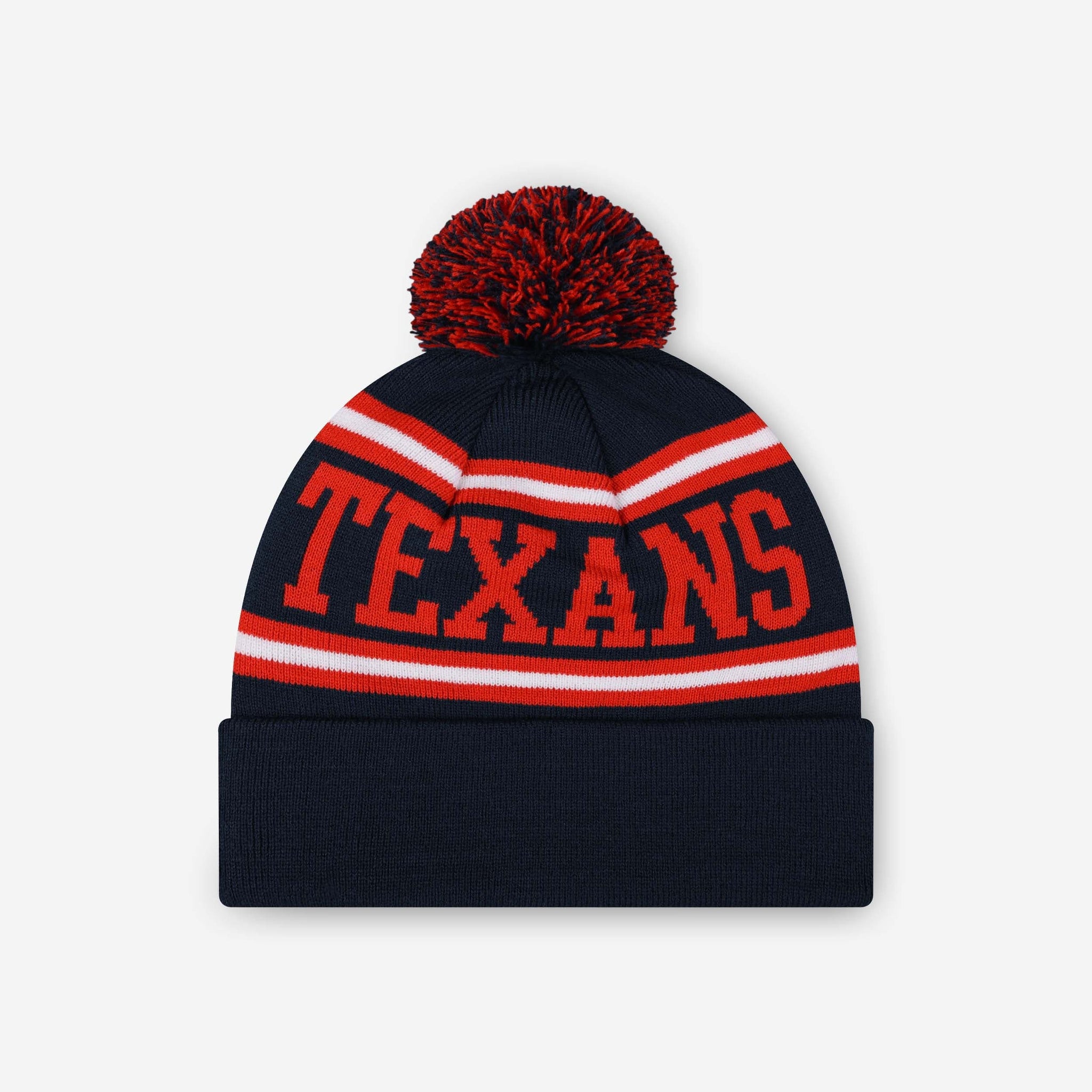 Heads up! This Houston Texans Primary Logo Stripe Pom Beanie is so cozy, you might not want to take it off at all this winter.