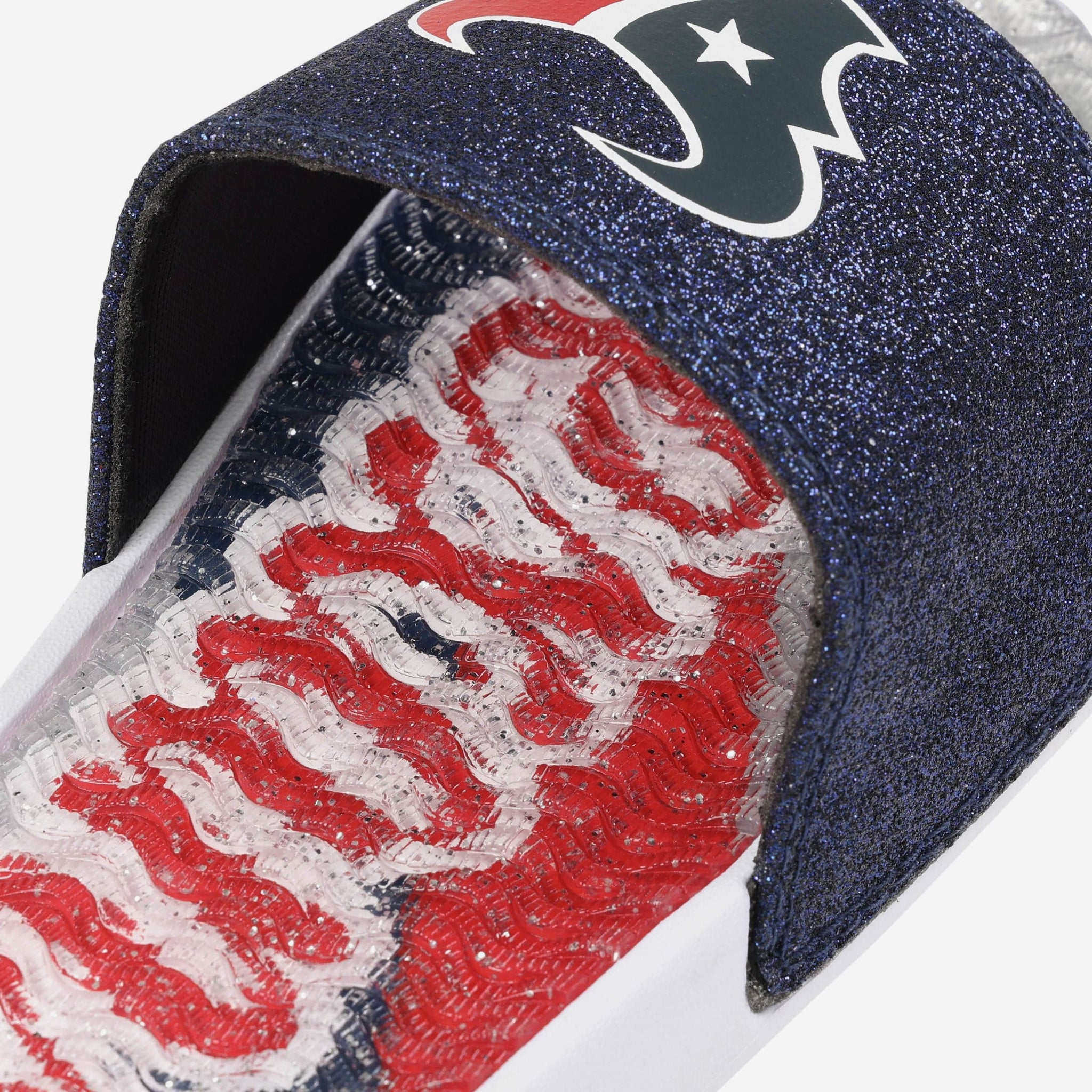 Fan footwear that will make you the pick of the glitter. Let your team spirit shine with every step in these Houston Texans Women's Glitter Gel Slides!