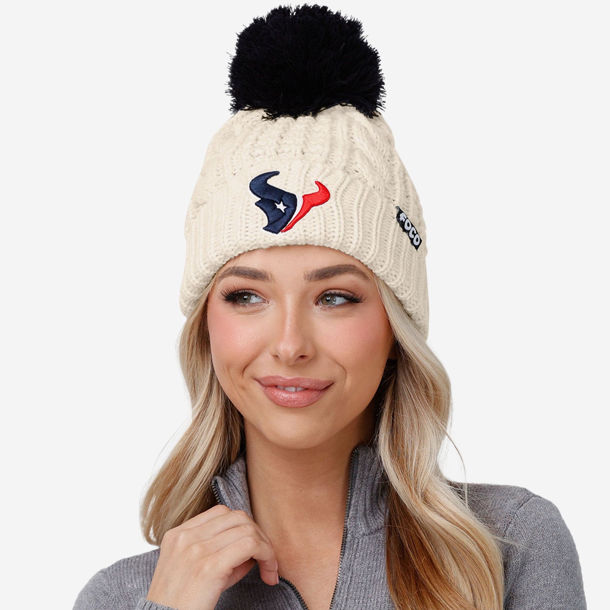 Putting together the ultimate fit for the tailgate and beyond? Make sure to get your head in the game with the Houston Texans Women's Primary Logo White Cable Knit Pom Beanie!