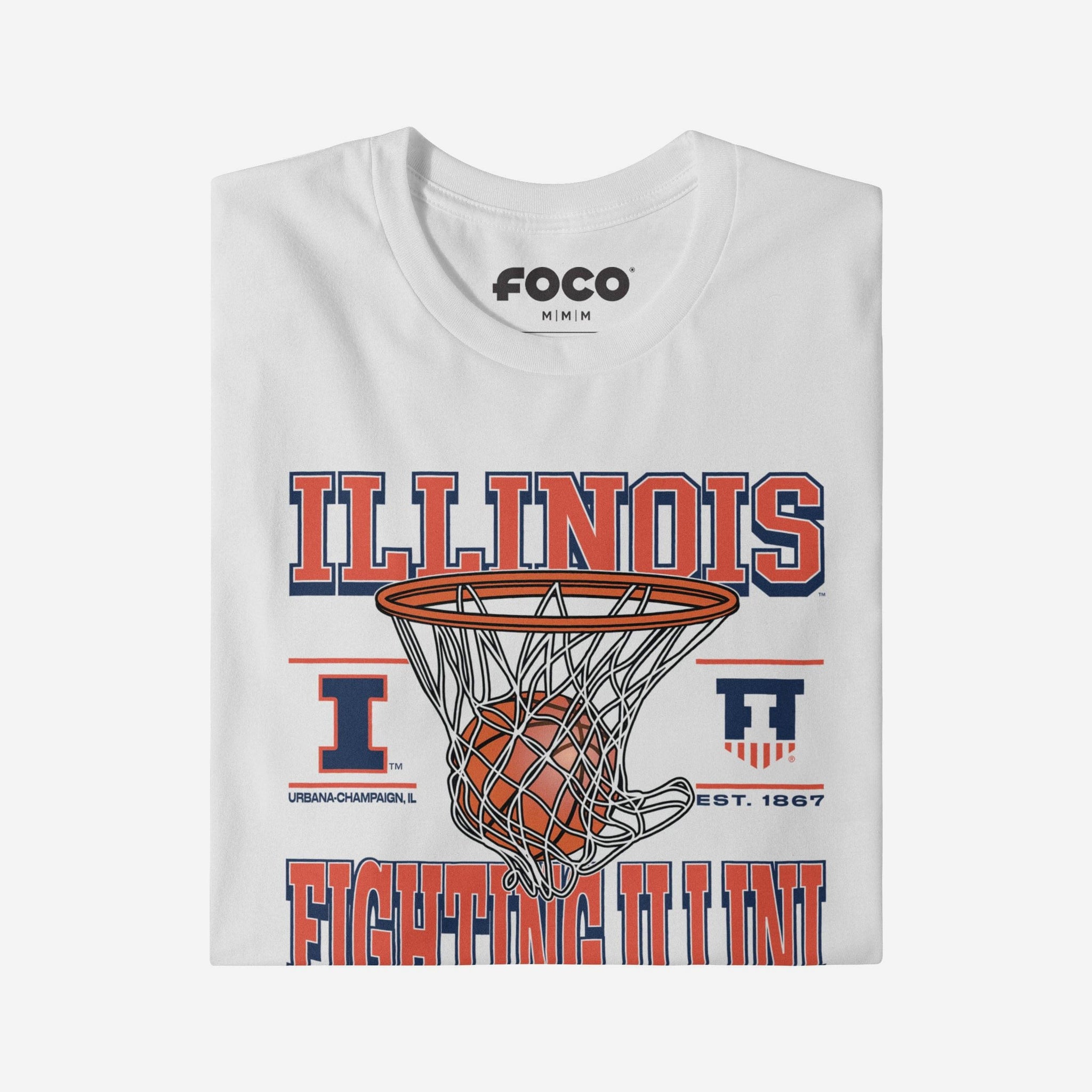 This top features a design that showcases your all-important team colors, a team logo display, a team wordmark name display, year of team establishment, and a basketball swishing through a net display meaning this t-shirt will prove your unmatched dedication to the Illinois Fighting Illini when you're at the game or watching at home. In other words, this graphic tee is about to be your new favorite teammate.