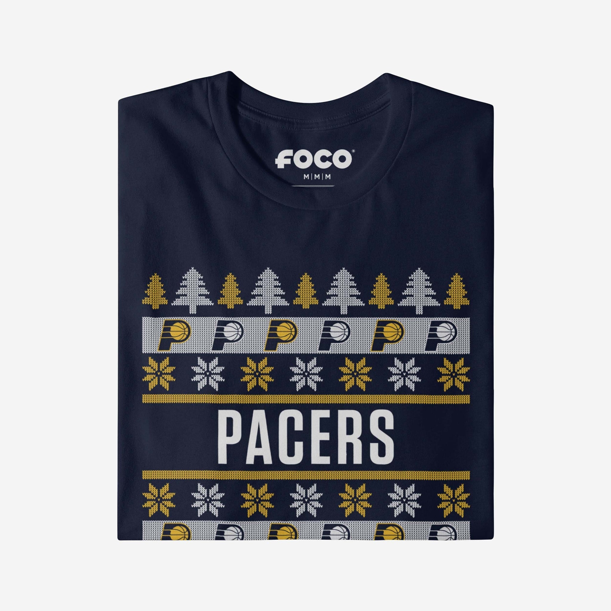 - Festive, team-colored design: This traditional t-shirt shows off the official Indiana Pacers colors in an all-over team-colored design with winter tree and snowflake accents, so you can show your team spirit with pride.