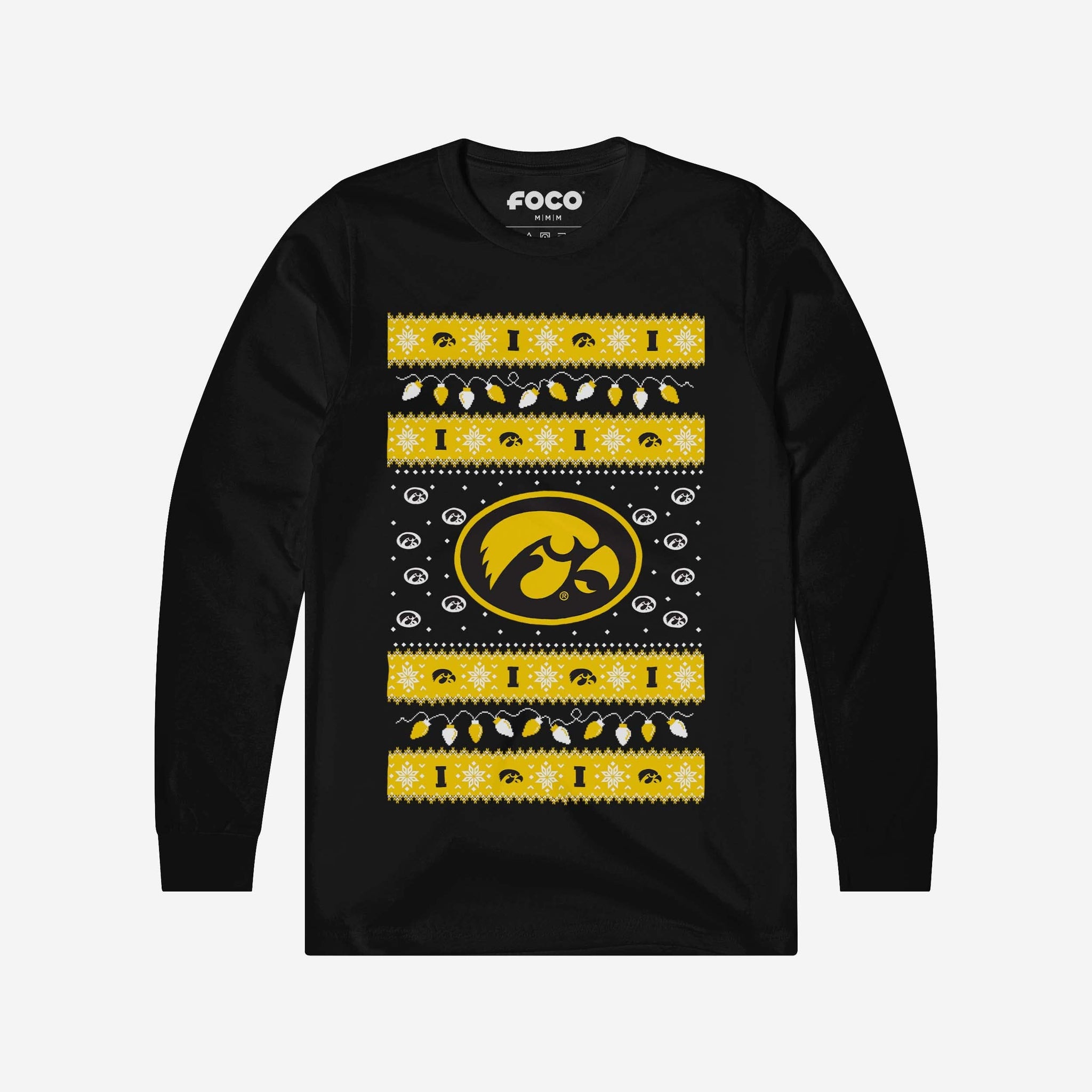 Iowa Hawkeyes Holiday Lights Sweater Long Sleeve T-Shirt FOCO S - FOCO.com