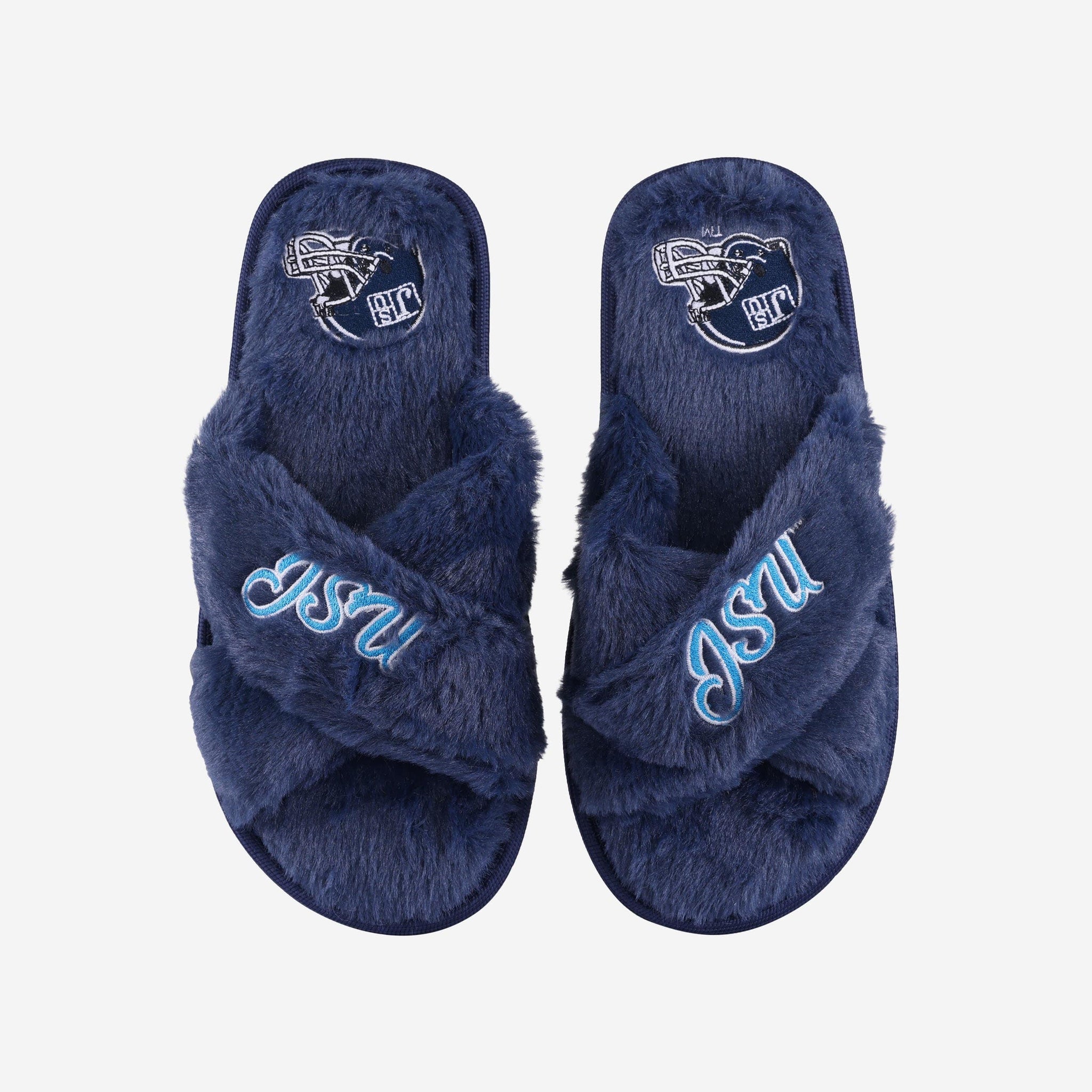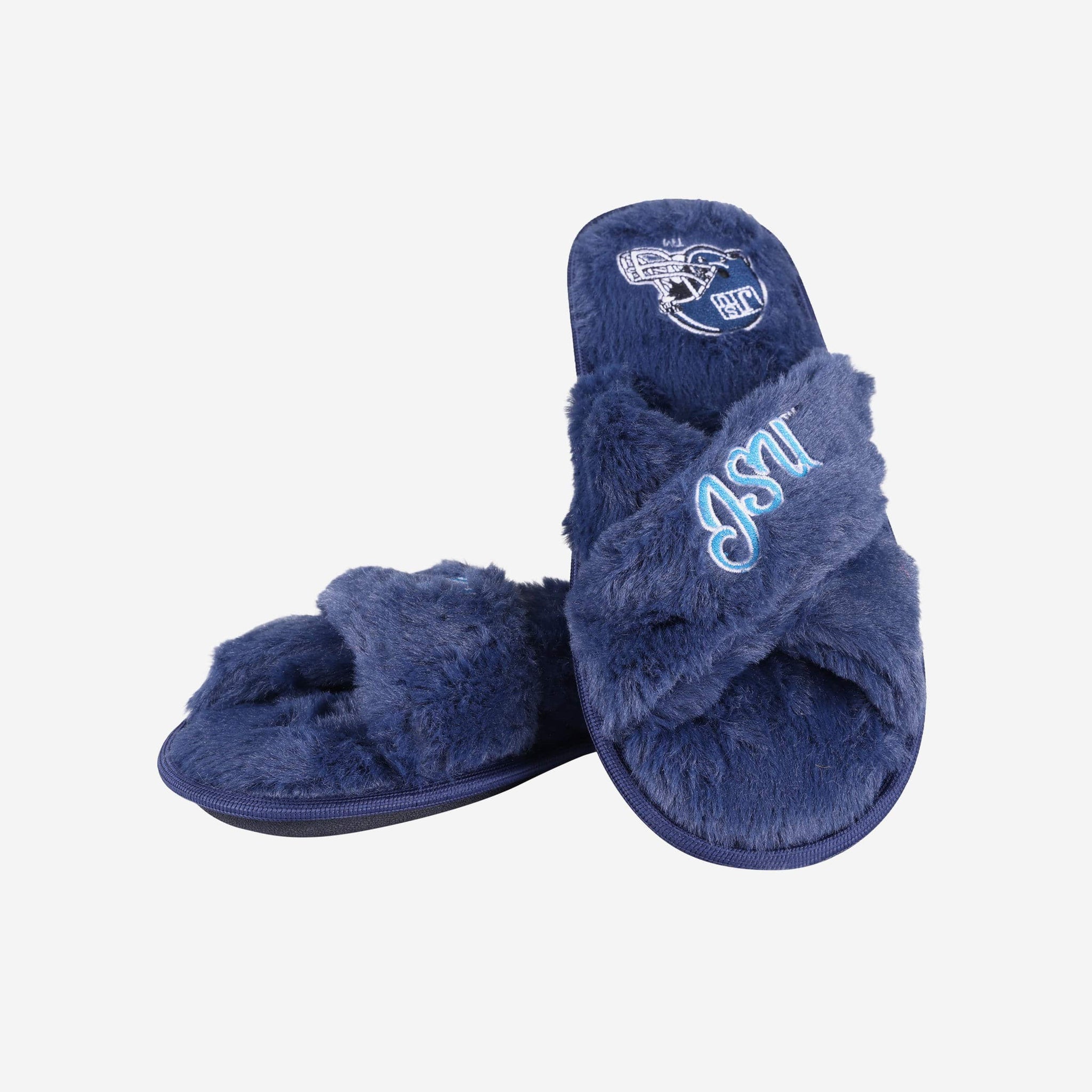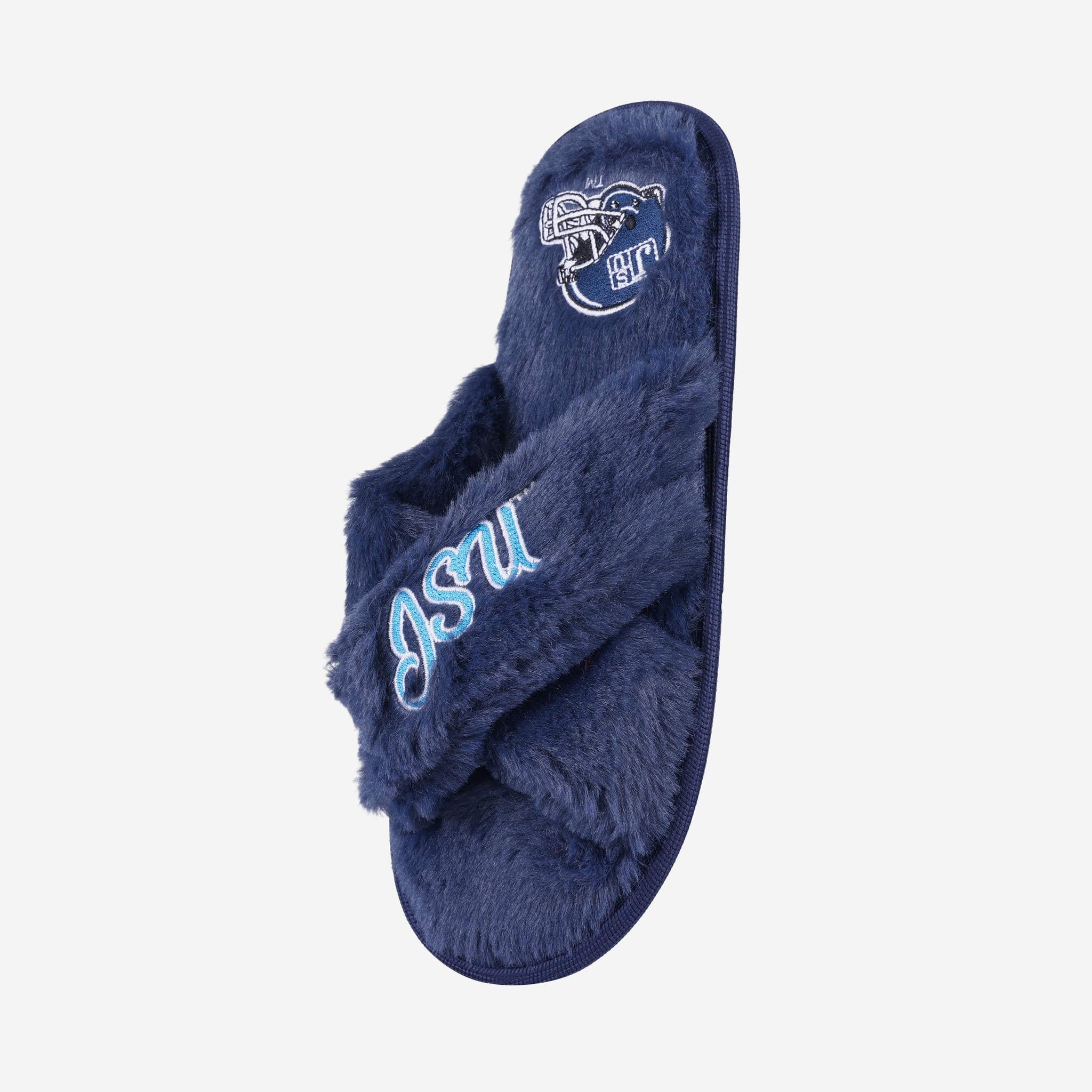 Slip in to something fuzzy, festive, and oh, so fan-tastic on your relaxing days at home. These Jackson State Tigers Women's Script Wordmark Fur Cross Slides are the best way to rep the team while you kick back and watch the game on TV.