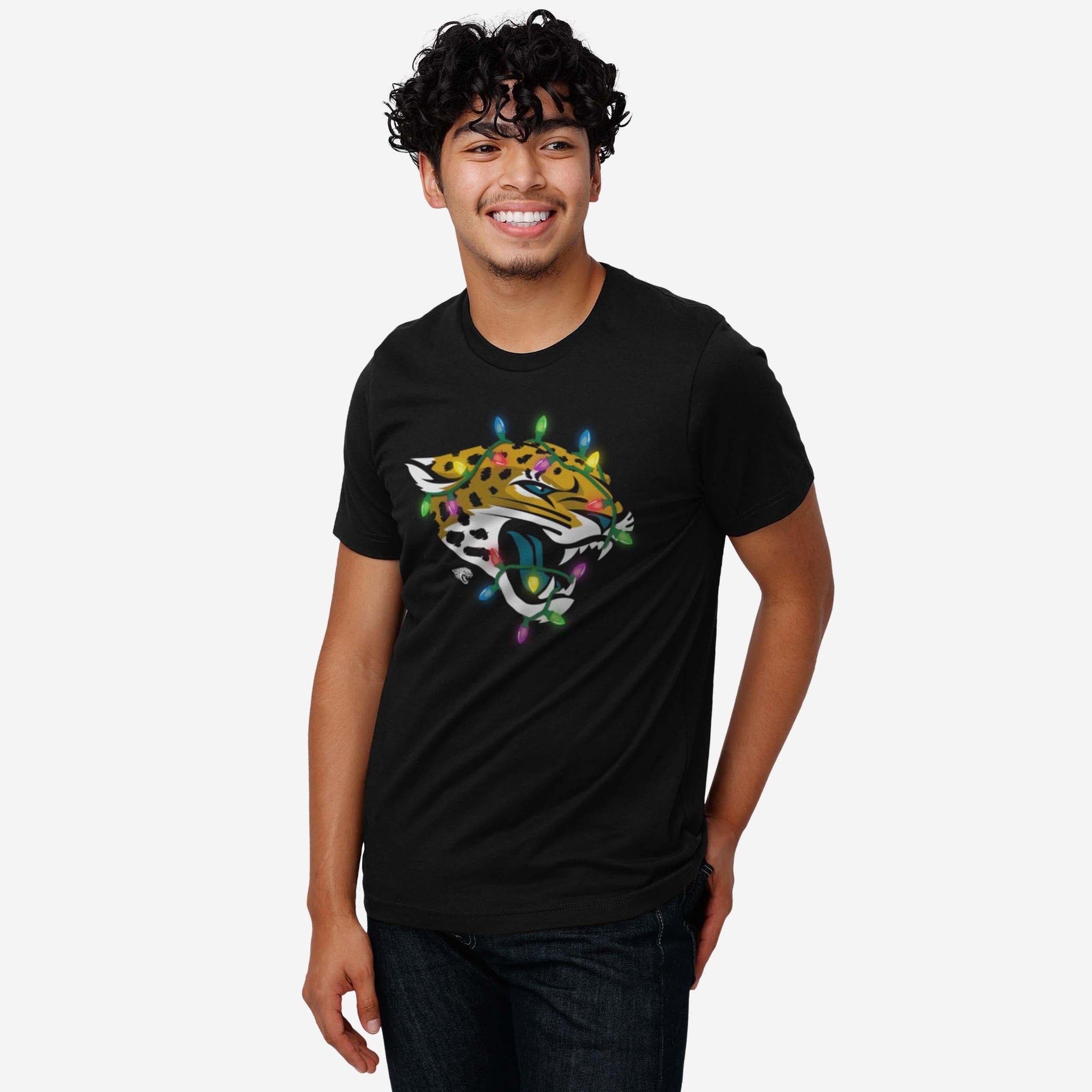Merry, bright, and full of team spirit! Let your fandom light the way to a legendary holiday season with this Jacksonville Jaguars Primary Logo Holiday Lights T-Shirt.