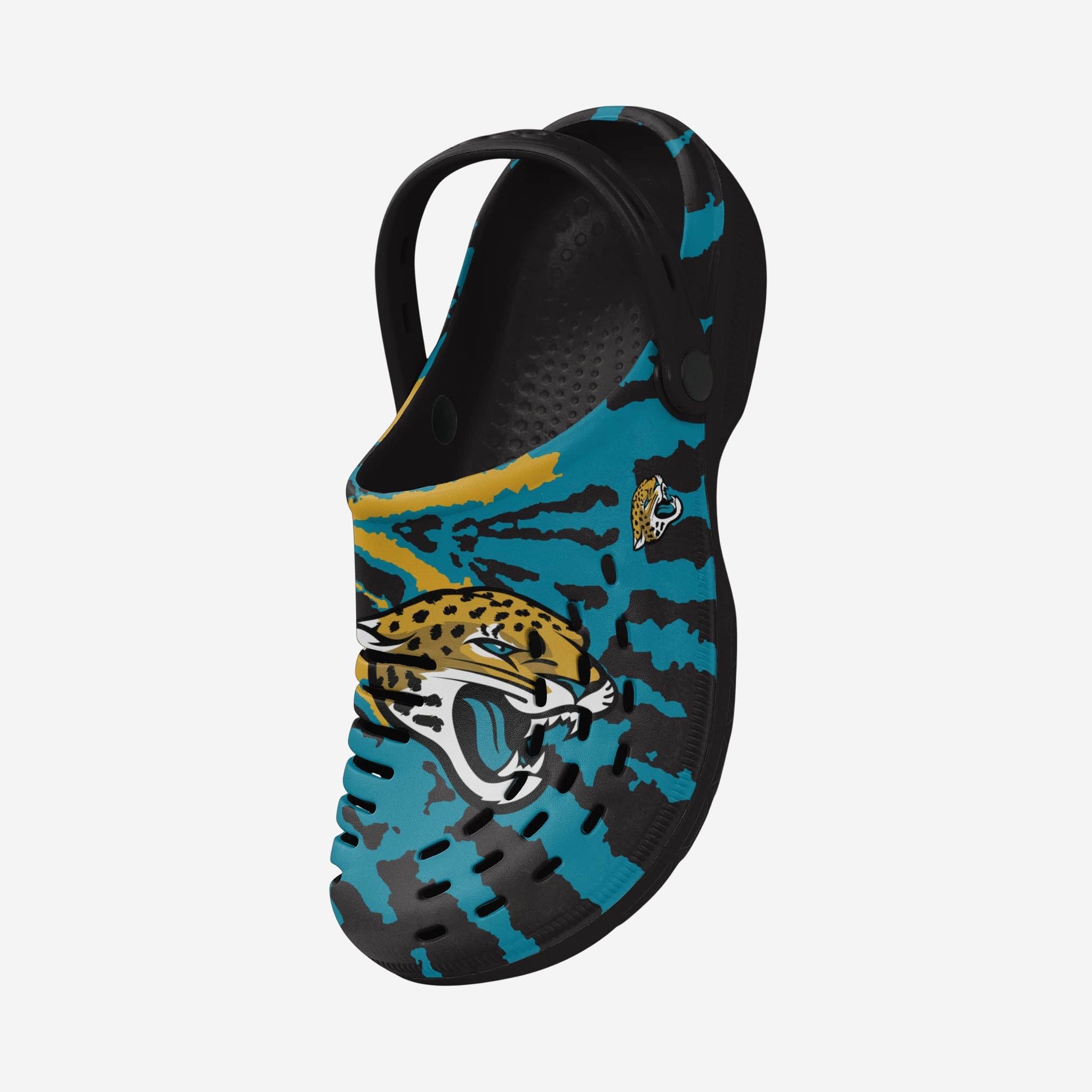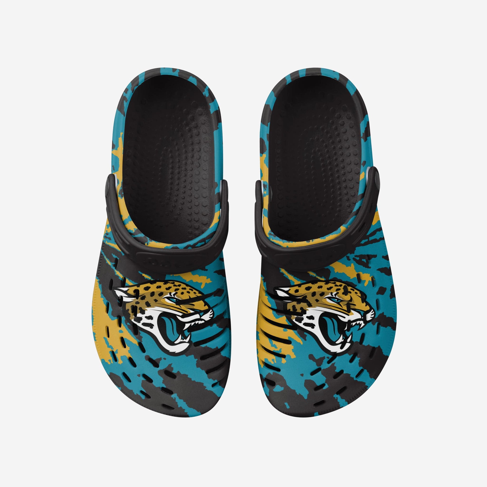 Enjoy a heaping helping of groovy goodness by standing out in these Jacksonville Jaguars Tie-Dye Clogs with Straps.
