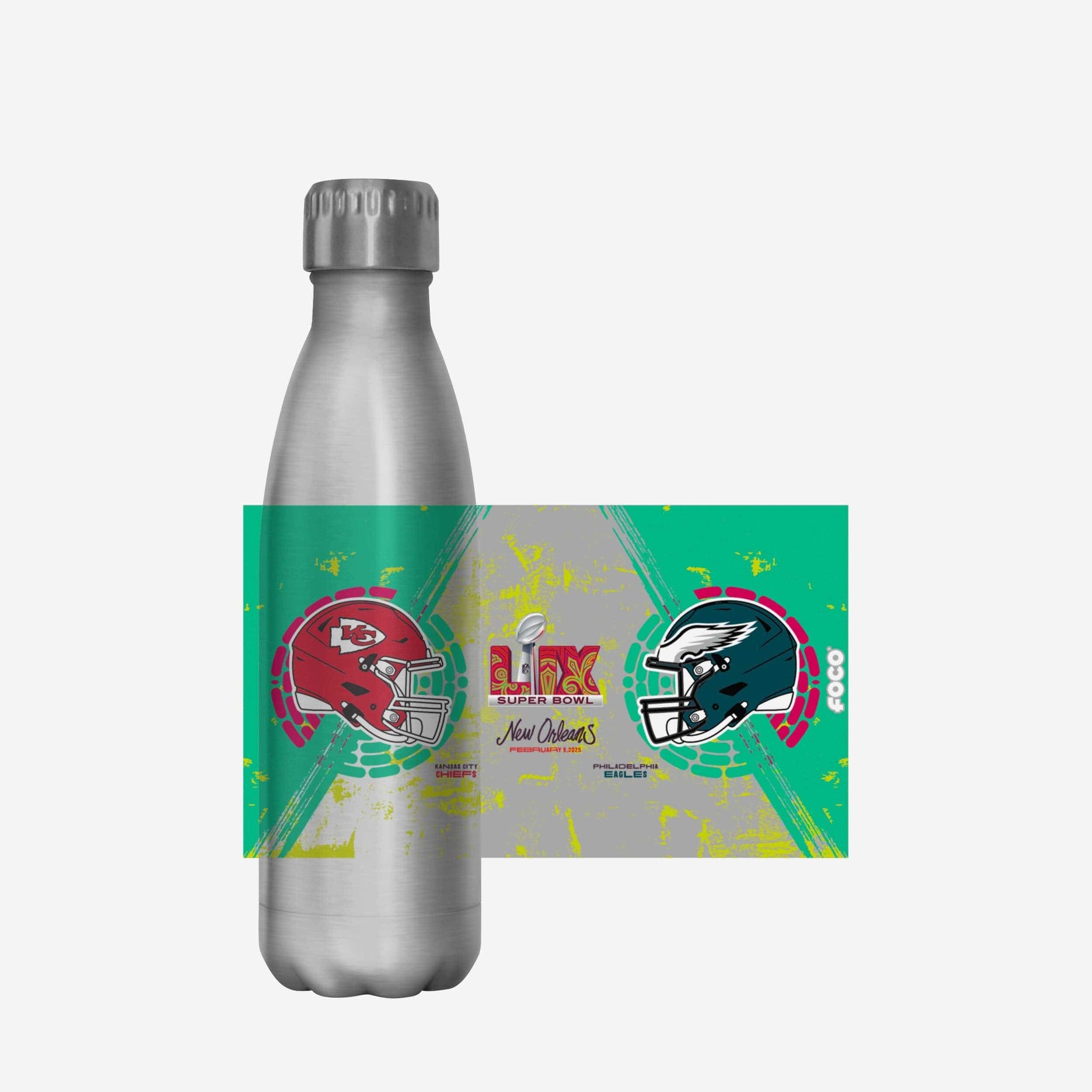 Whether you’re rooting for the Chiefs or the Eagles, you need a way to stay hydrated. Bring the excitement from New Orleans to your hands with a Kansas City Chiefs vs. Philadelphia Eagles Super Bowl LIX Silver 17 oz. Stainless Steel bottle.
