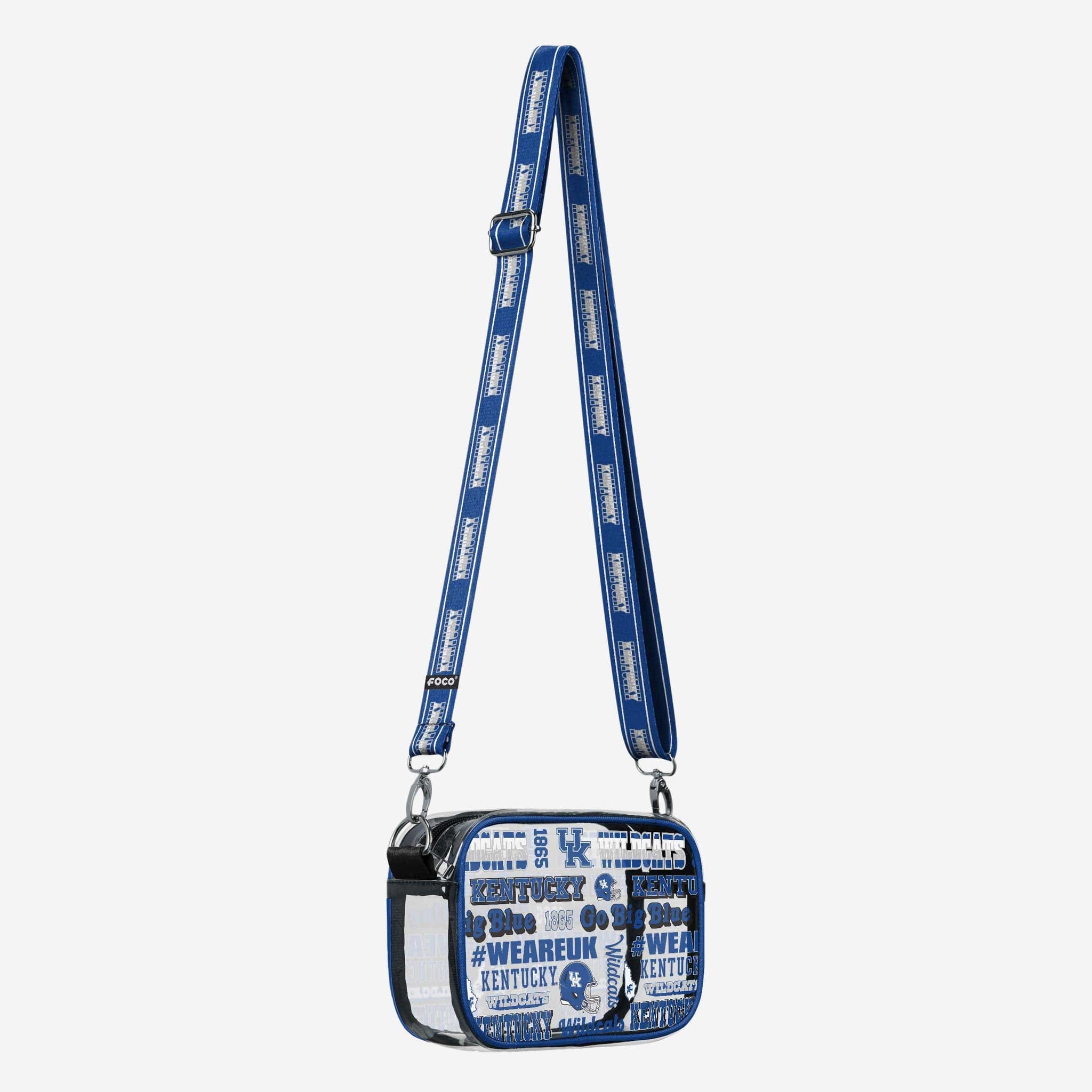 Over your shoulder and off to the game. Whether you're running errands on the town or running the tailgate in the parking lot, this Kentucky Wildcats Repeat Retro Print Clear Crossbody Bag is the perfect way to carry the team like never before.