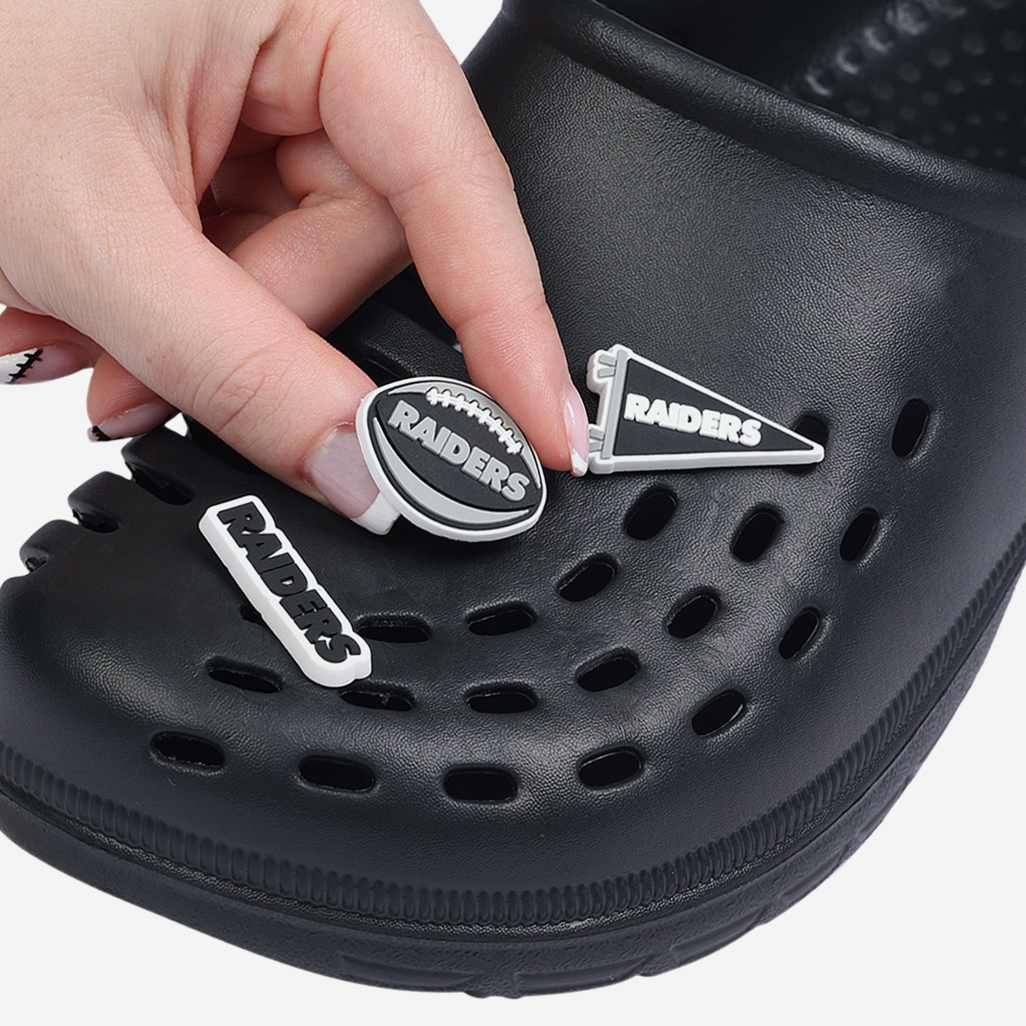 Footwear meets fashion in a whole new way! Taking your fit from drab to fab is as simple as snapping in these Las Vegas Raiders 6 Pack Team Clog Charms.