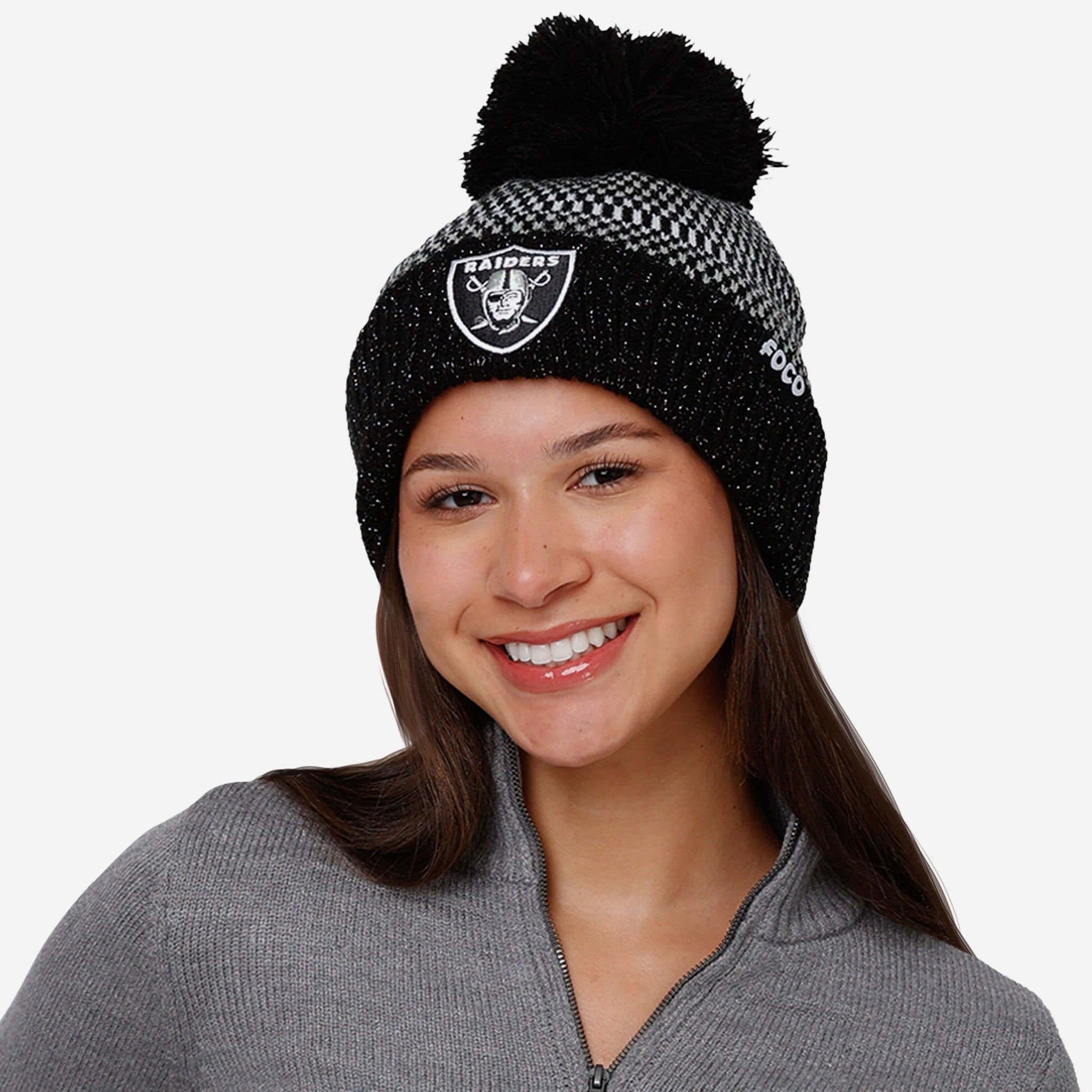 Putting together the ultimate fit for the tailgate and beyond? Make sure to get your head in the game with the Las Vegas Raiders Women's Cozy Knit Metallic Thread Pom Beanie!