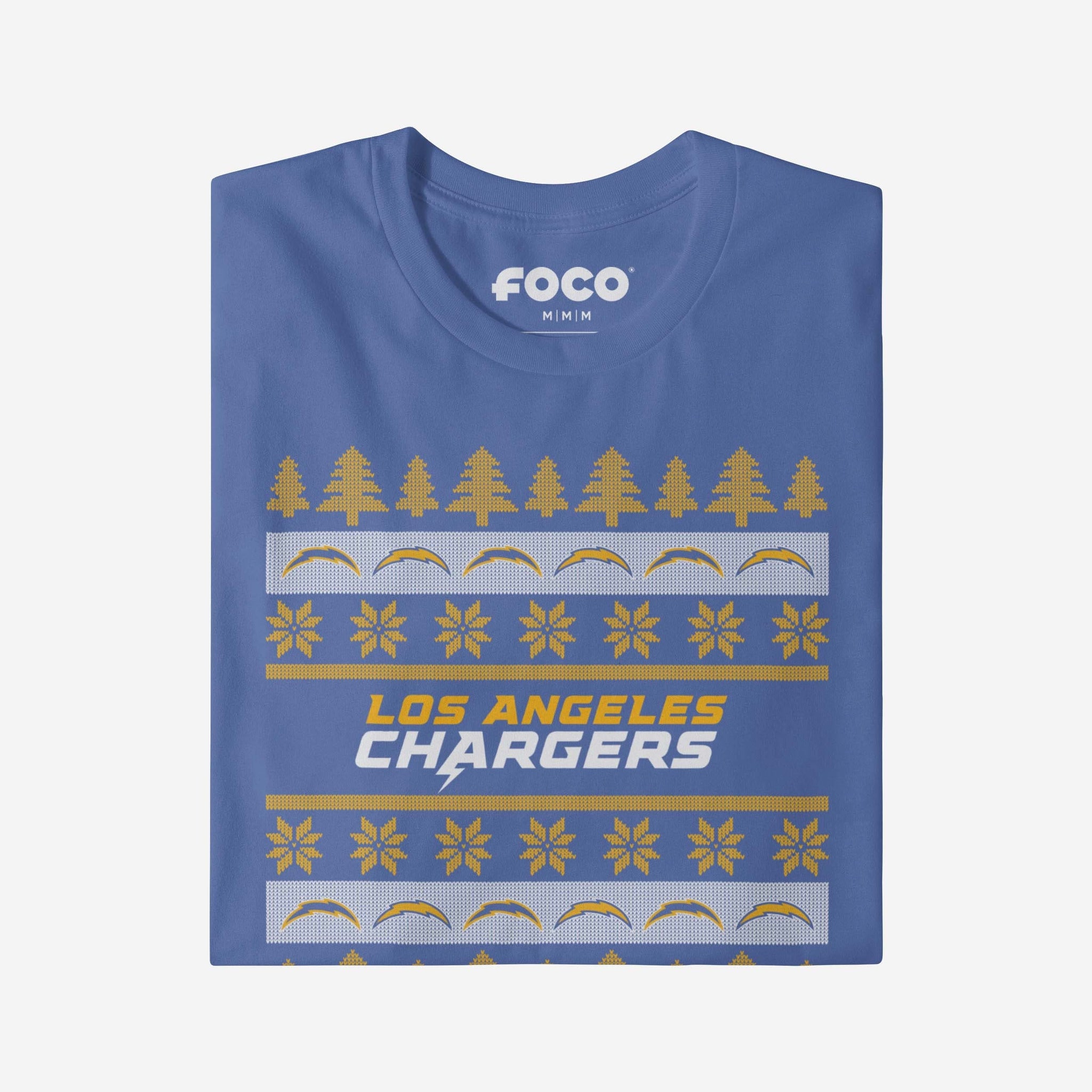 - Festive, team-colored design: This traditional t-shirt shows off the official Los Angeles Chargers colors in an all-over team-colored design with winter tree and snowflake accents, so you can show your team spirit with pride.