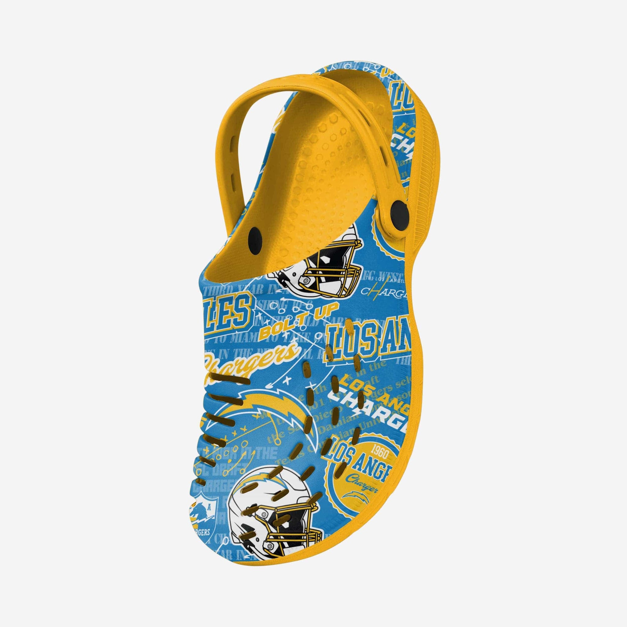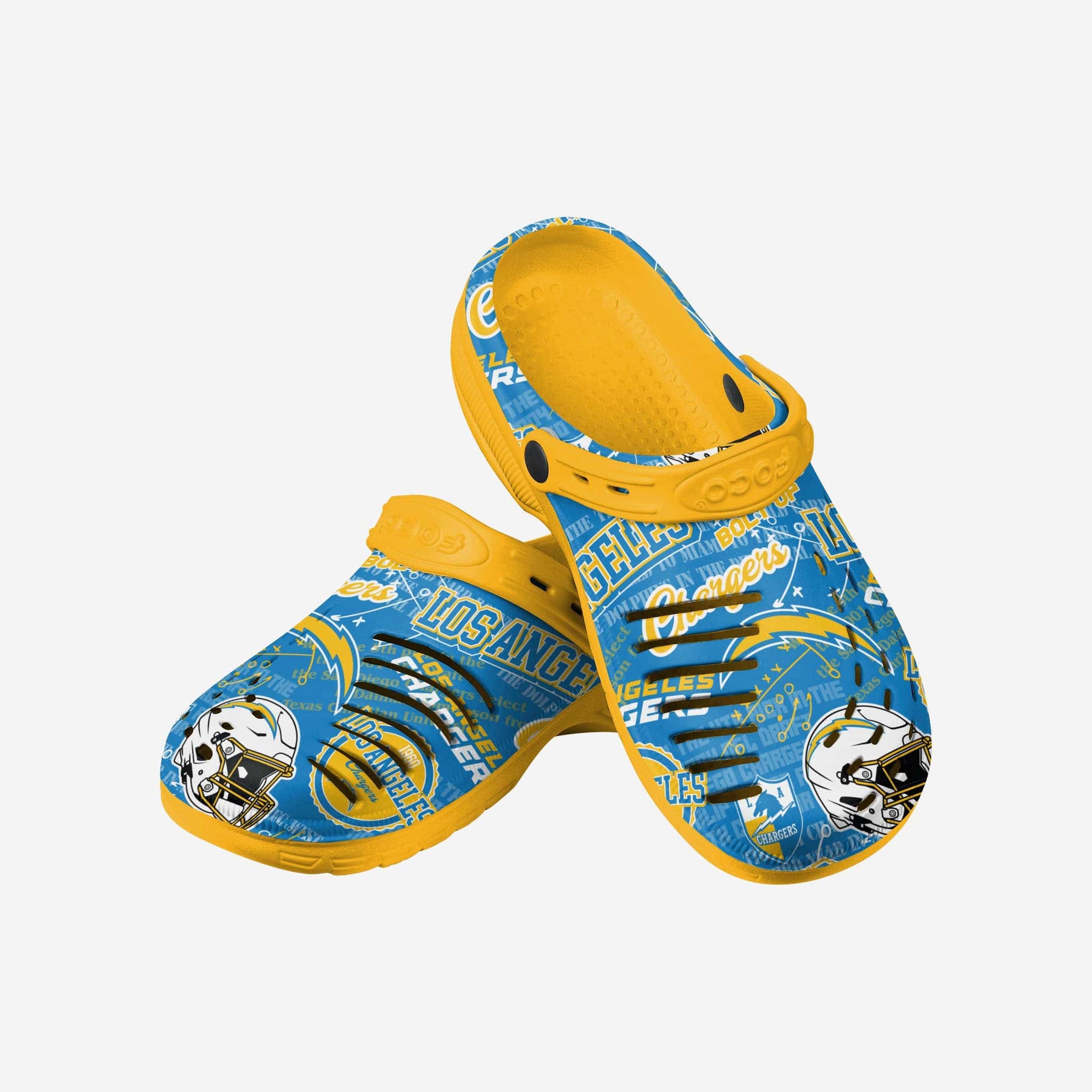 The Los Angeles Chargers Historic Print Clogs with Straps are here to help you take a step into the time machine and celebrate your franchise's glorious history.