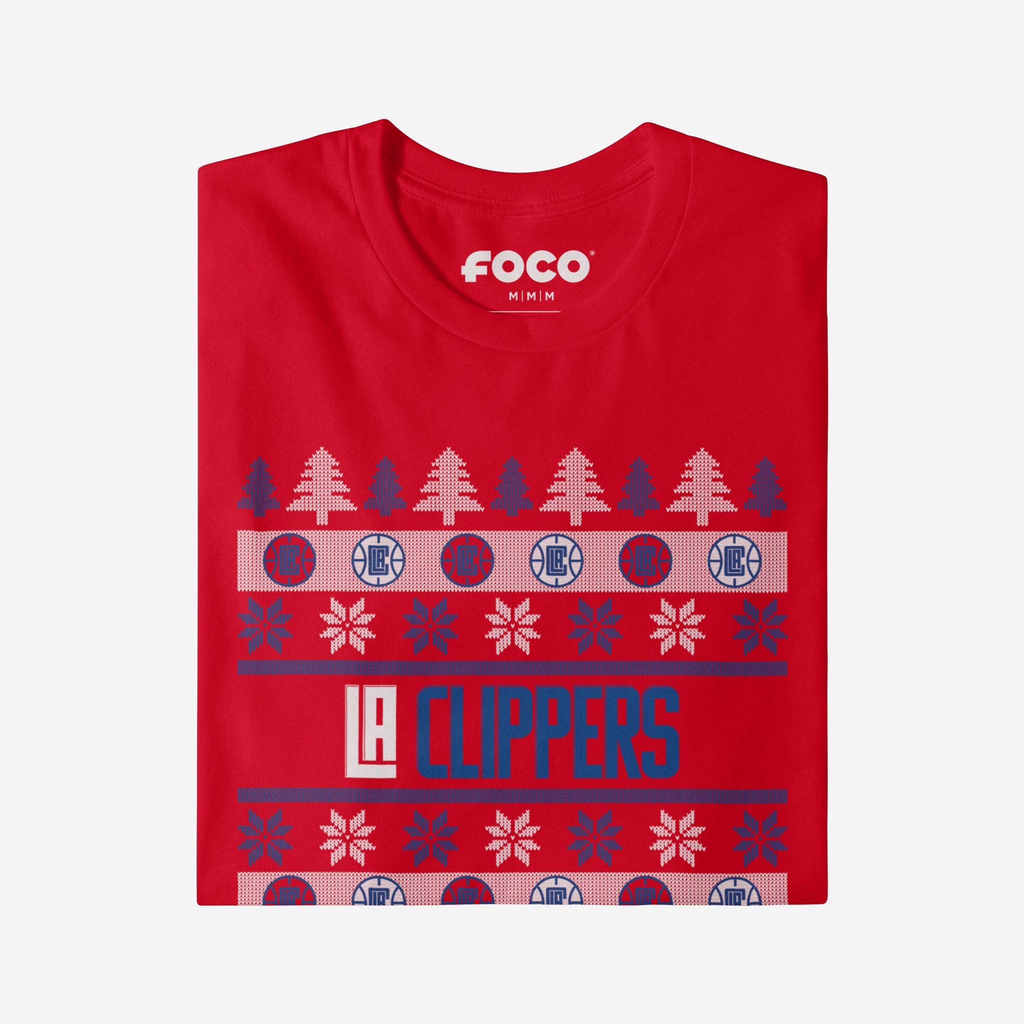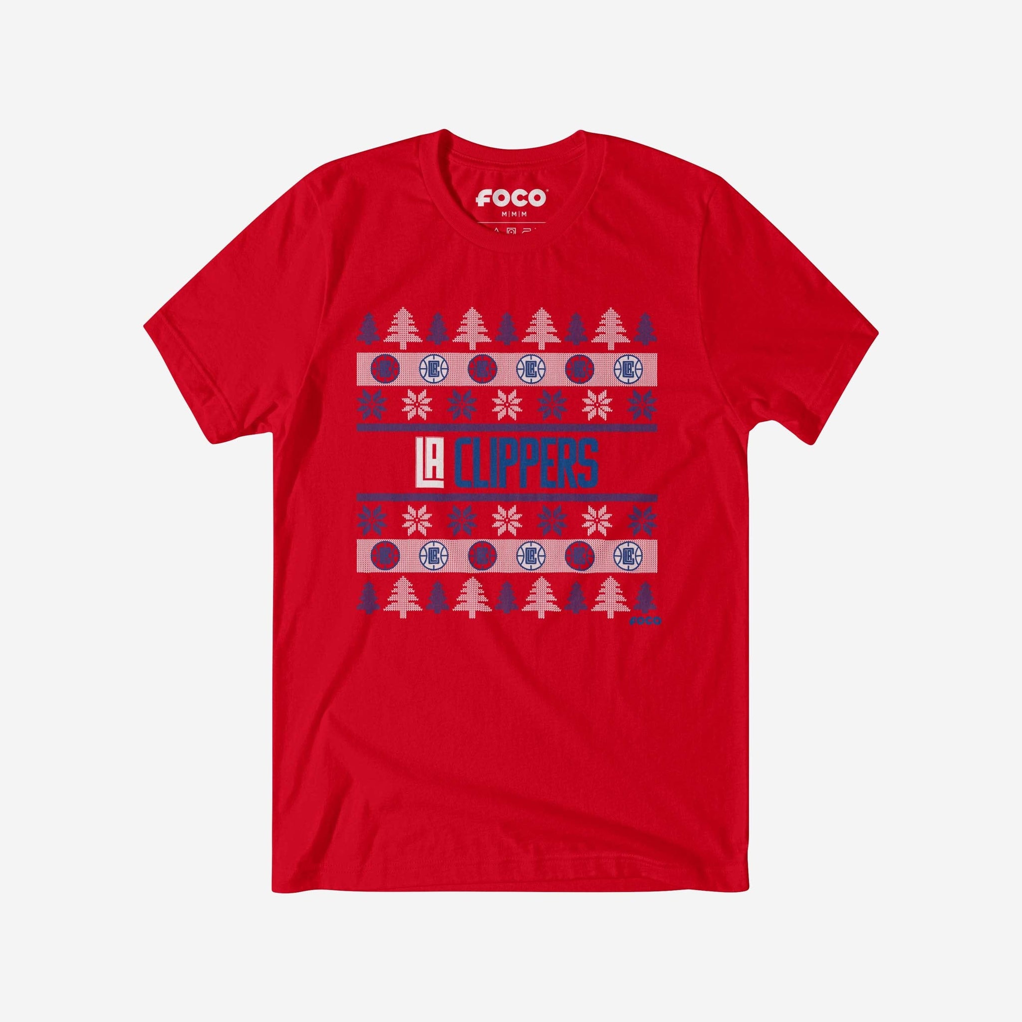 - Festive, team-colored design: This traditional t-shirt shows off the official Los Angeles Clippers colors in an all-over team-colored design with winter tree and snowflake accents, so you can show your team spirit with pride.