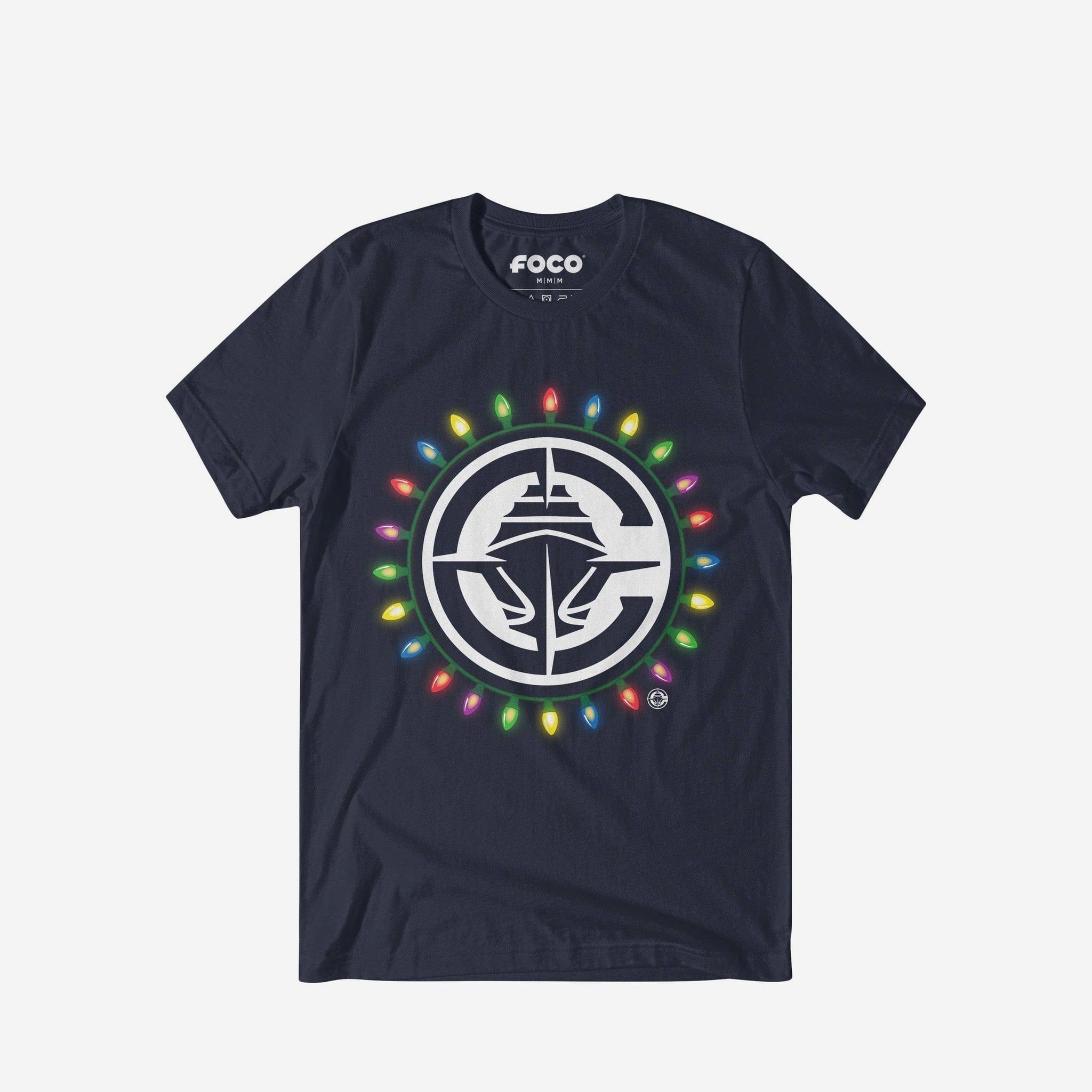 - Design: This traditional t-shirt features Christmas lights displayed around a bold team logo display on the front so you can let your fandom light the way to a very merry season