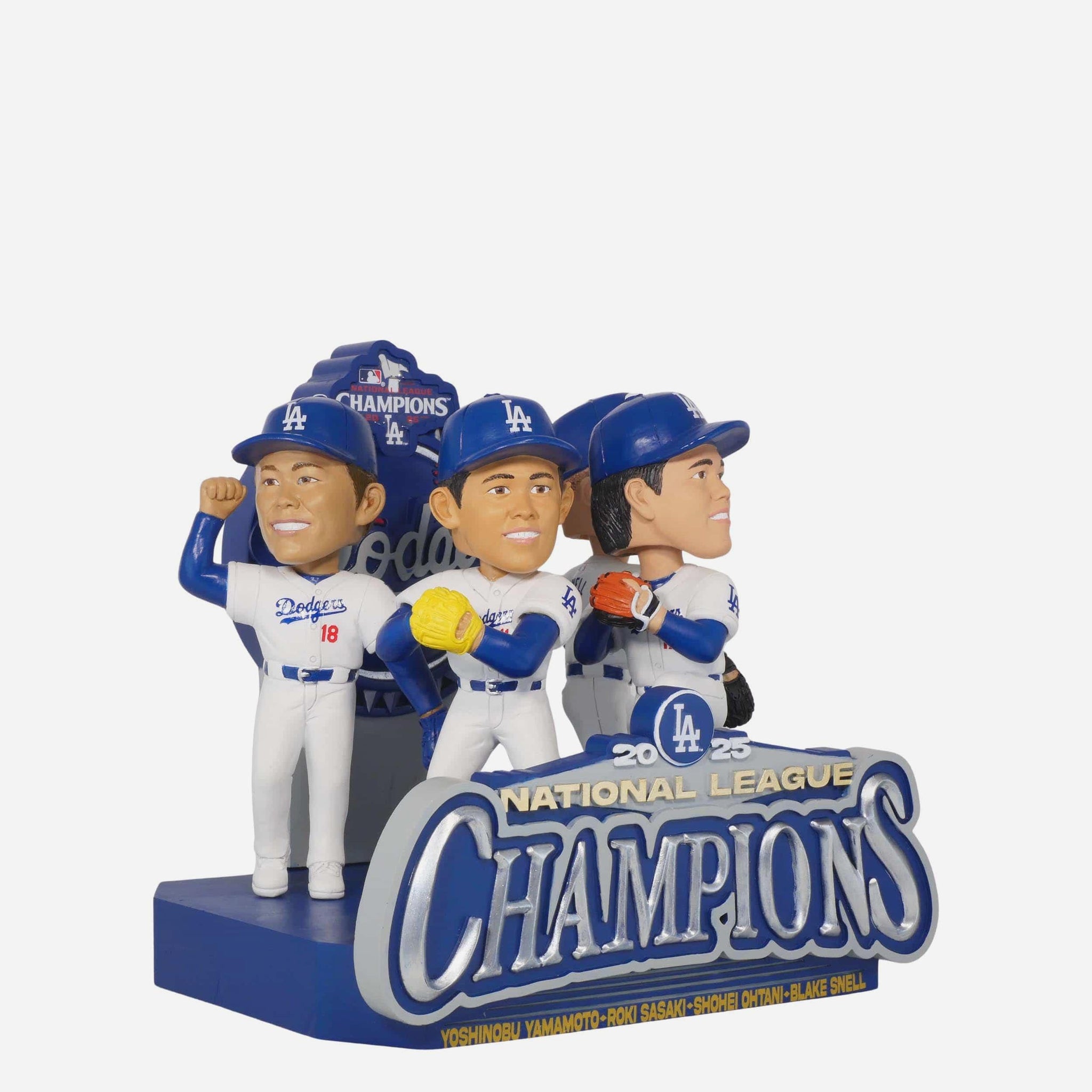 The arms that brought the heat! Celebrate the Los Angeles Dodgers’ 2025 National League Championship run with this Los Angeles Dodgers 2025 National League Champions Pitchers Mini Bobblehead Scene, a tribute to the mound masters who powered the team to glory.