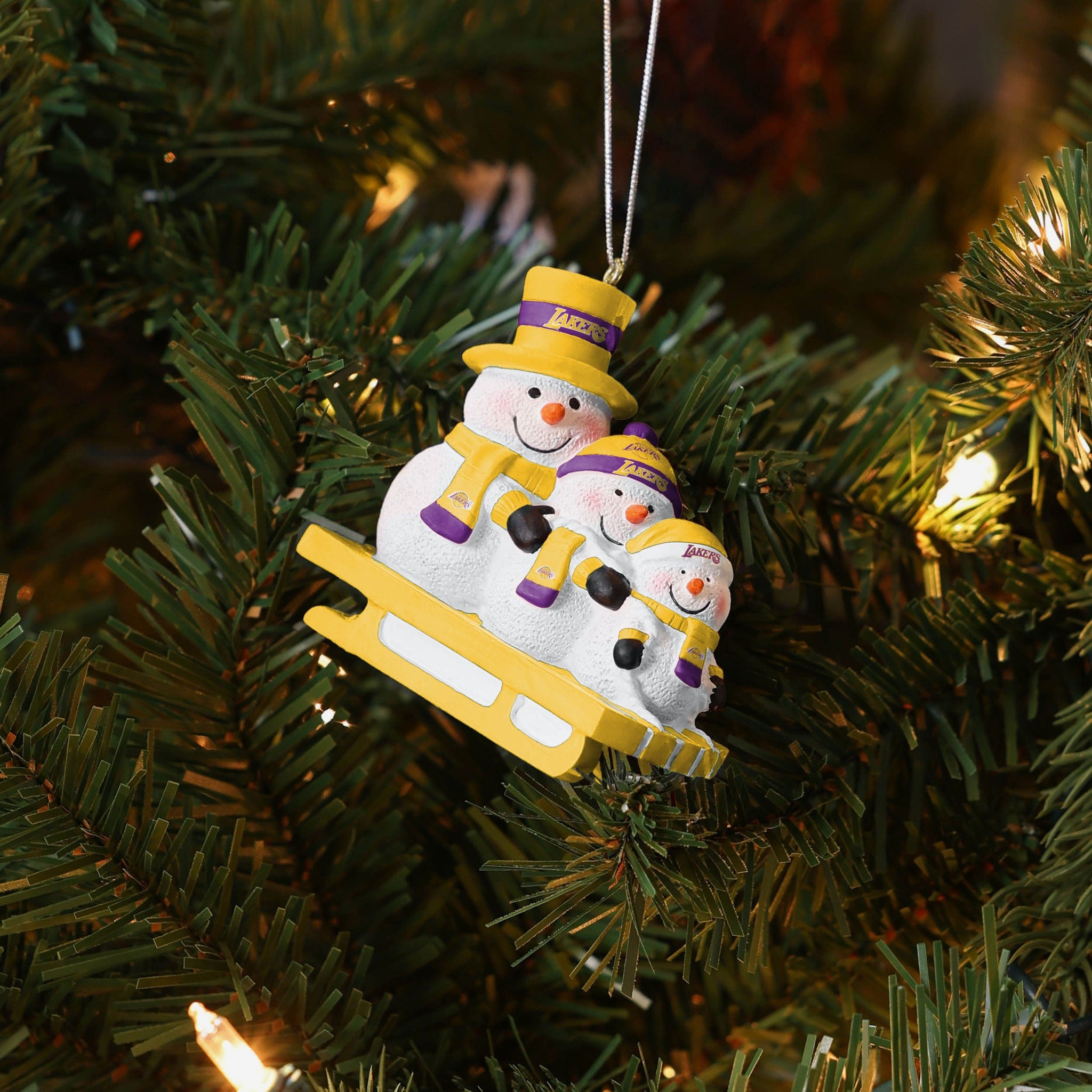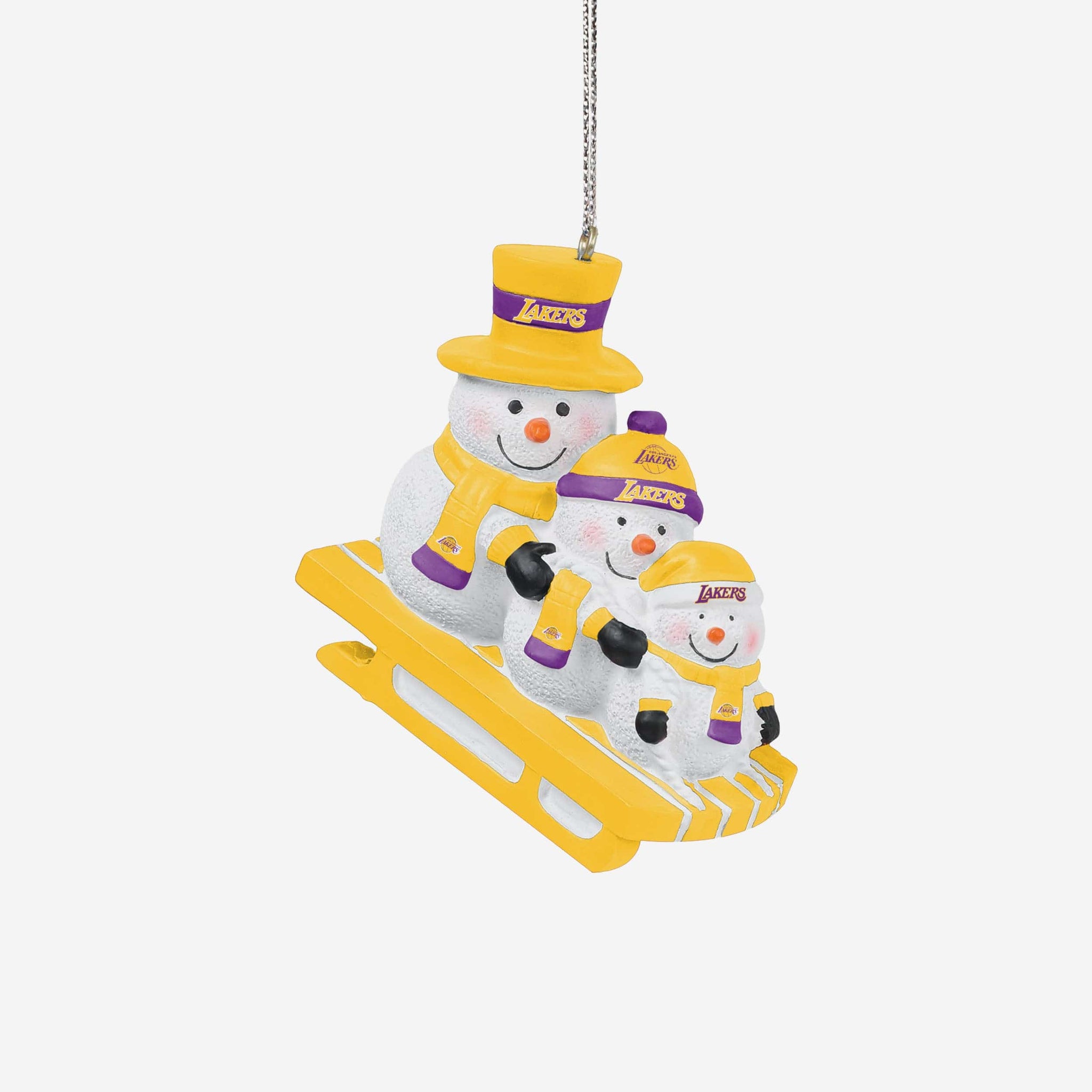 Meet three snowman friends that won't melt when you bring them inside! Introducing the Los Angeles Lakers Sledding Snowmen Ornament!