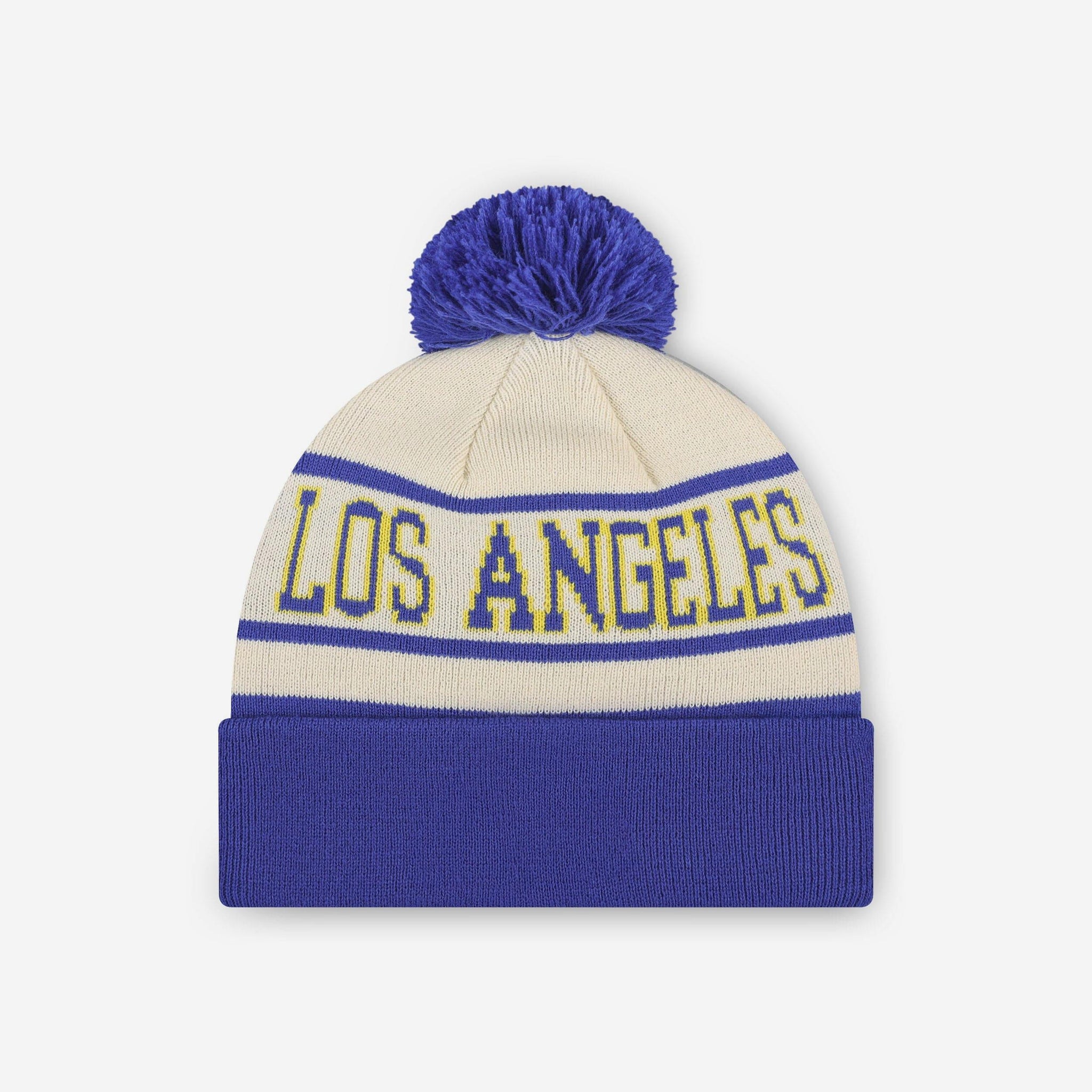 Don’t get left out in the cold. Make the smart play for gameday and beyond with the Los Angeles Rams Heritage Stripe Primary Logo Pom Beanie!