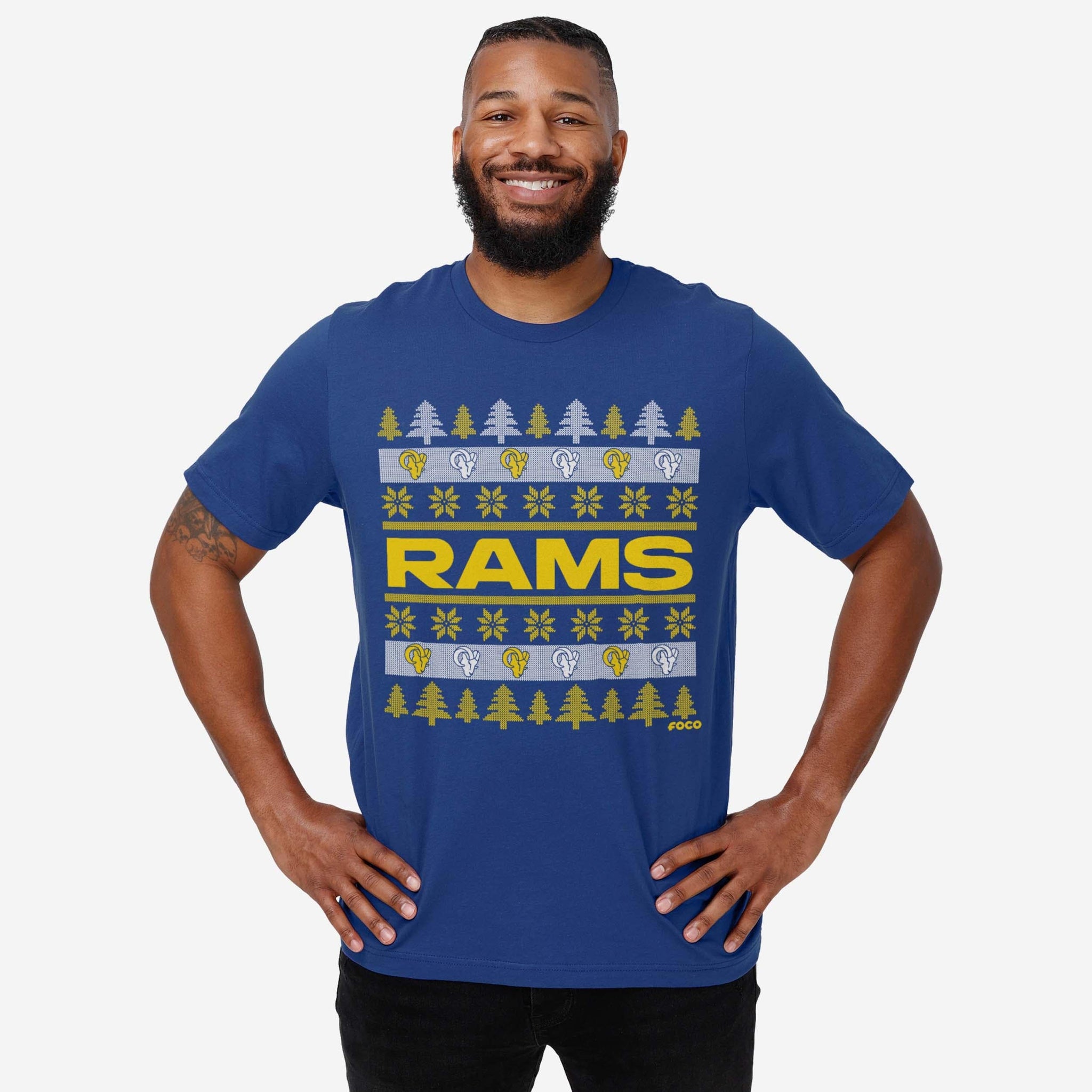 Los Angeles Rams Holiday Sweater T-Shirt FOCO - FOCO.com