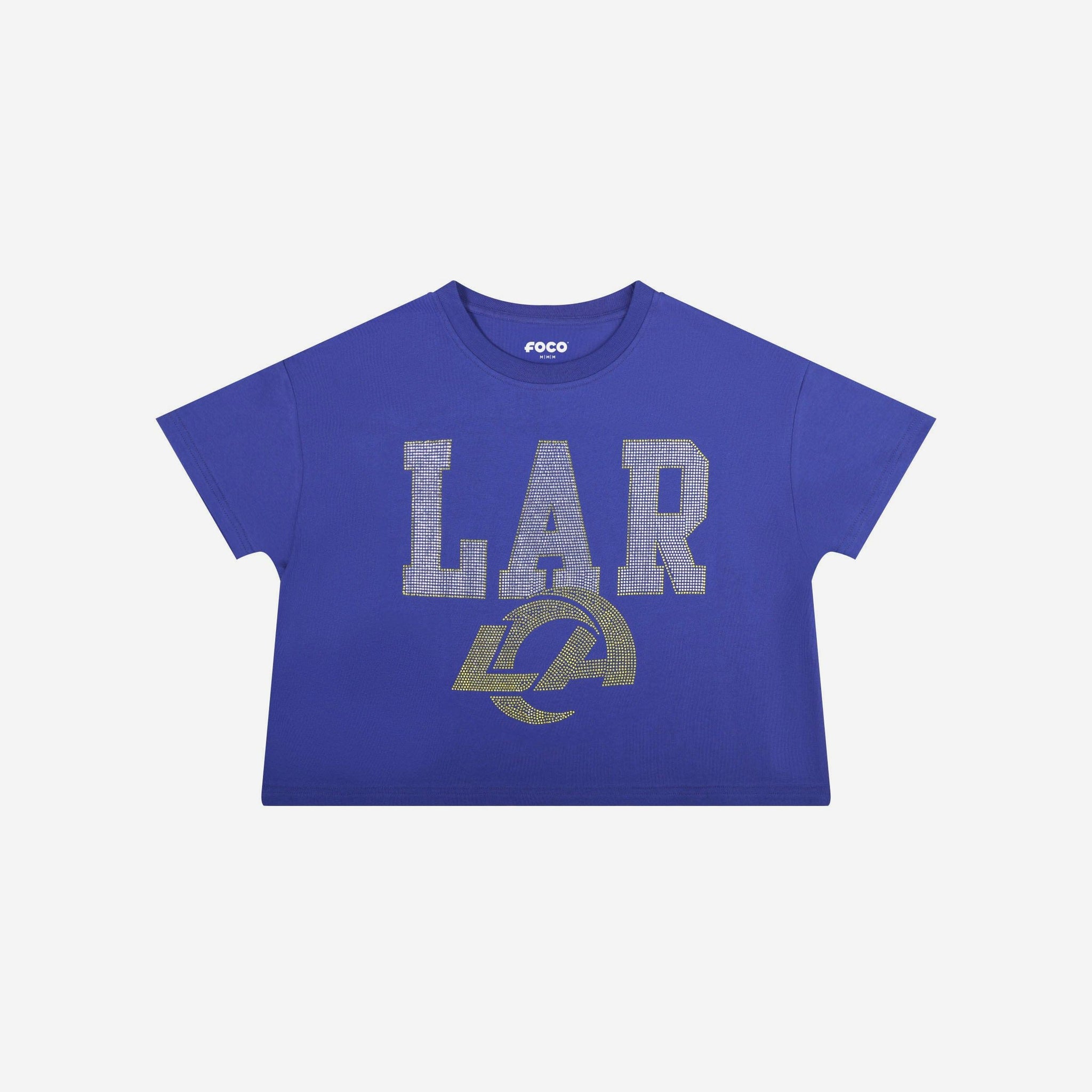 Victory looks good on you, and so will this Los Angeles Rams Womens Rhinestone Logo Crop Top. With its flattering cropped fit and dazzling team pride, this top is your go-to for standing out in the crowd and showing up for your squad in style.