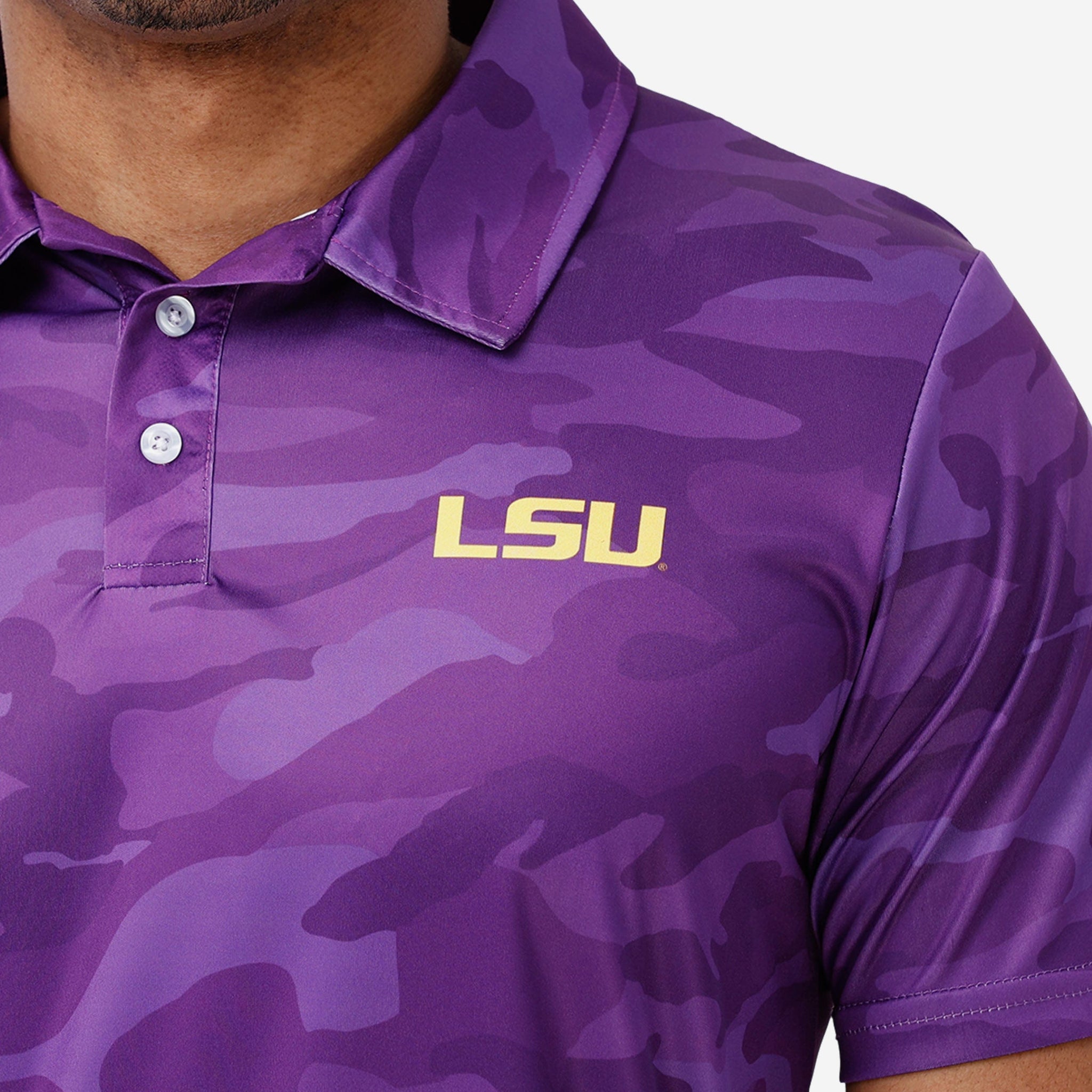 We're not talking about those phony baloney fake fans that still call it "sportsball." True fans like you simply can't hide your team pride. Not even with some camouflage. When you rock this LSU Tigers Color Camo Polyester Polo, you'll see what we mean.