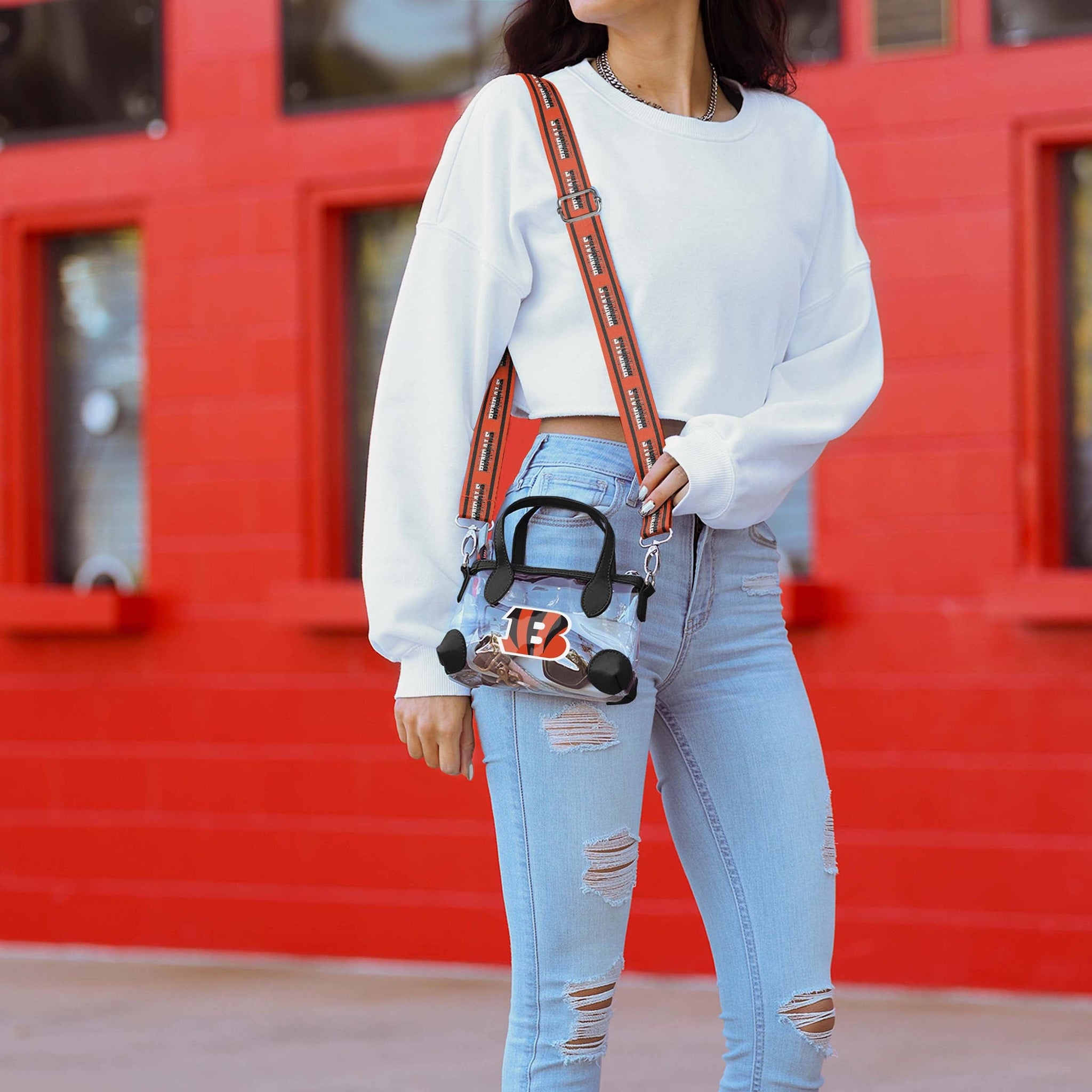 It's clear to see. Whether you've got it slung across your shoulder or held in your hands, this Cincinnati Bengals Big Logo Clear Crossbody Mini Purse is the perfect accessory for displaying your fandom and keeping your stuff secure at the game.