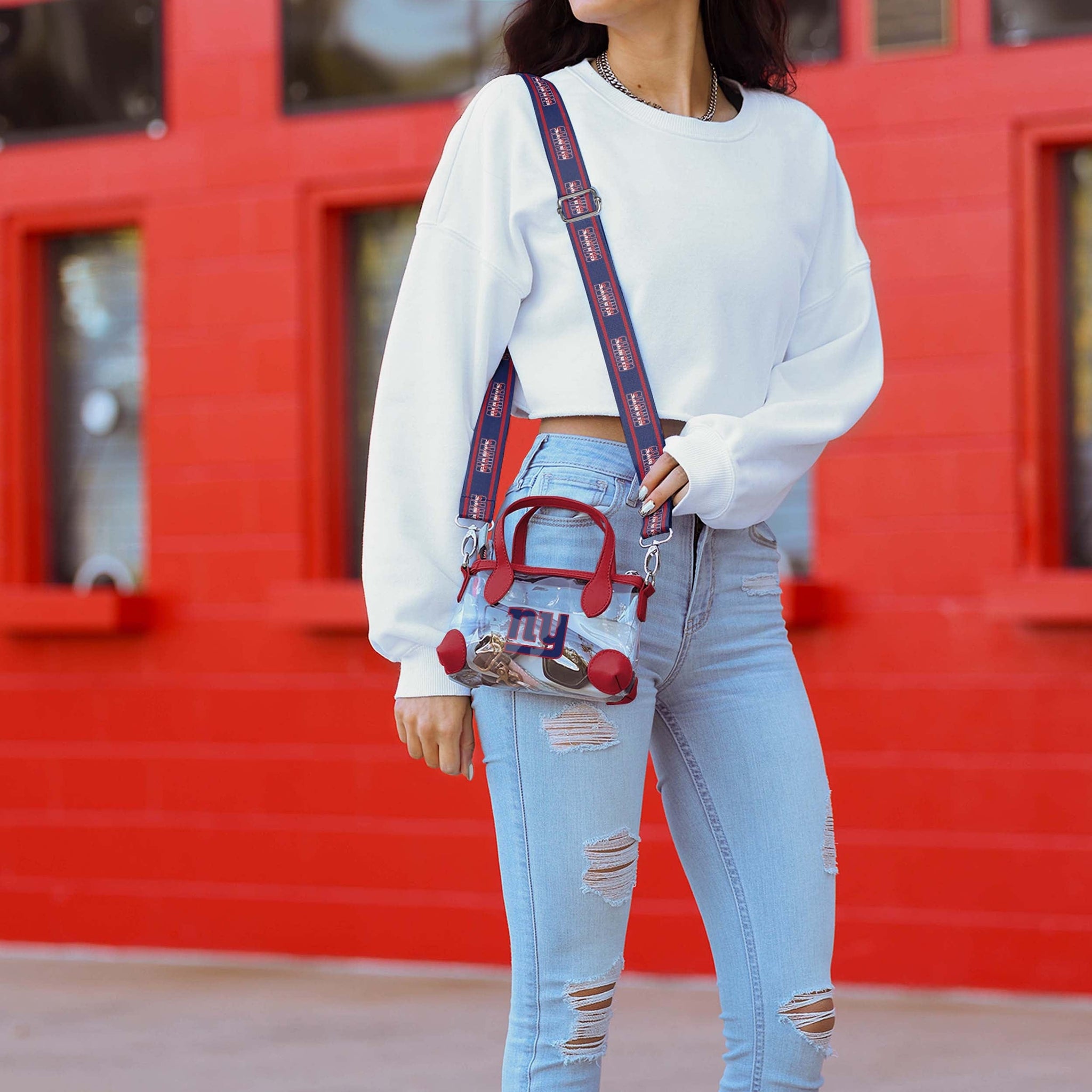 It's clear to see. Whether you've got it slung across your shoulder or held in your hands, this New York Jets Big Logo Clear Crossbody Mini Purse is the perfect accessory for displaying your fandom and keeping your stuff secure at the game.