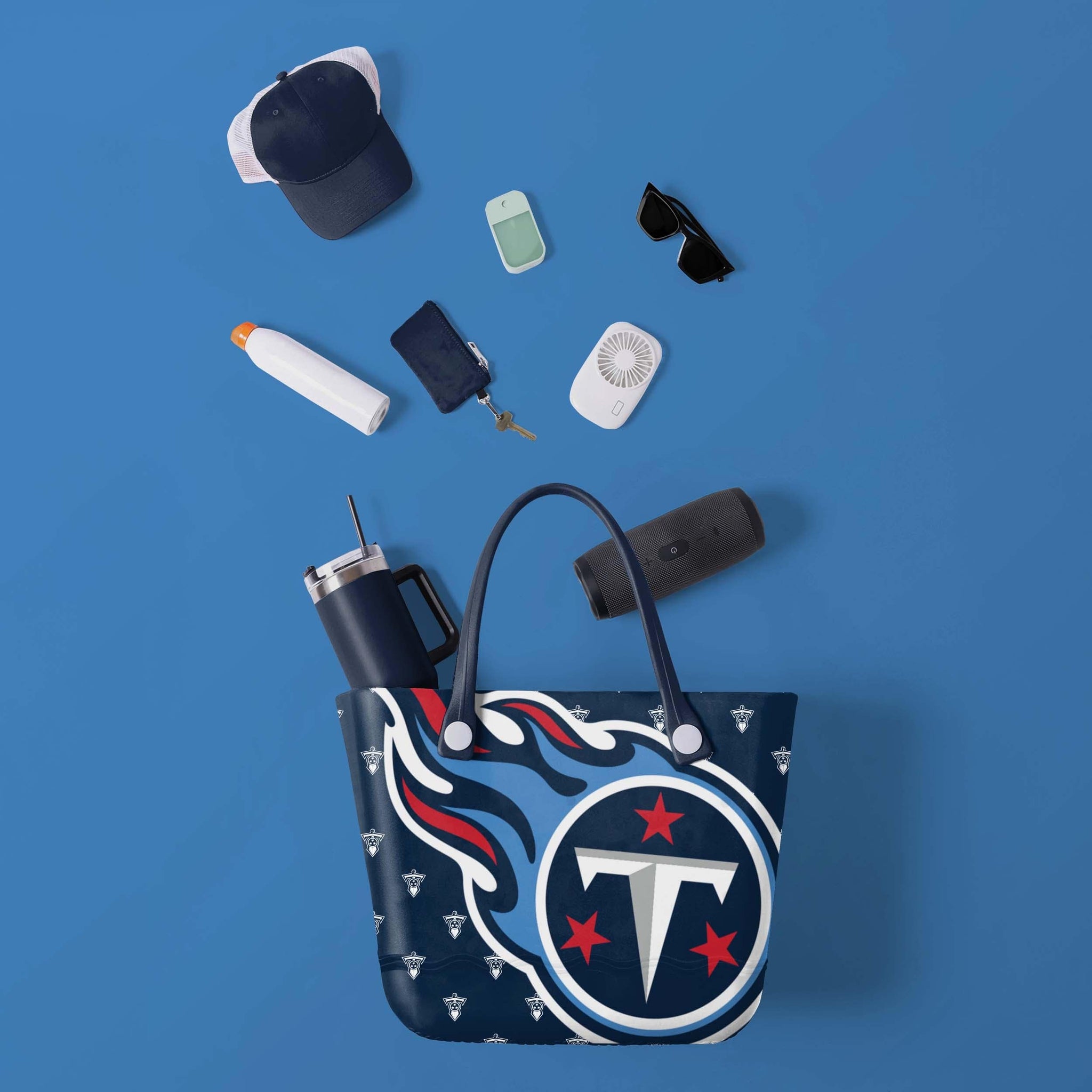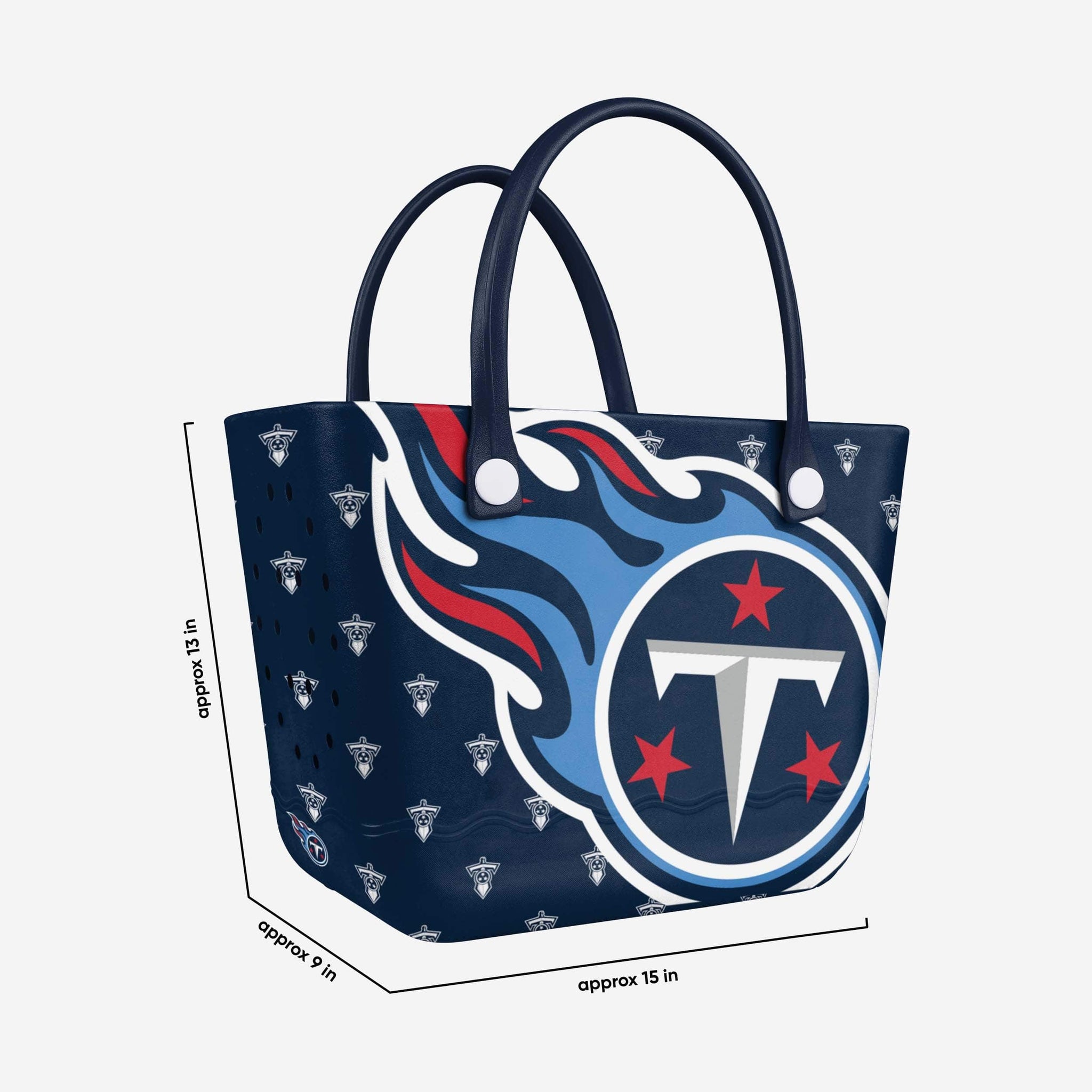 Looking for a bag as durable and dependable as your team spirit? You've found it. Whether you're running the tailgate, hitting the beach, or going on any adventure, pack up your fandom and take it on the go with this Tennessee Titans Big Logo Mini Print Tailgate Tote Bag.