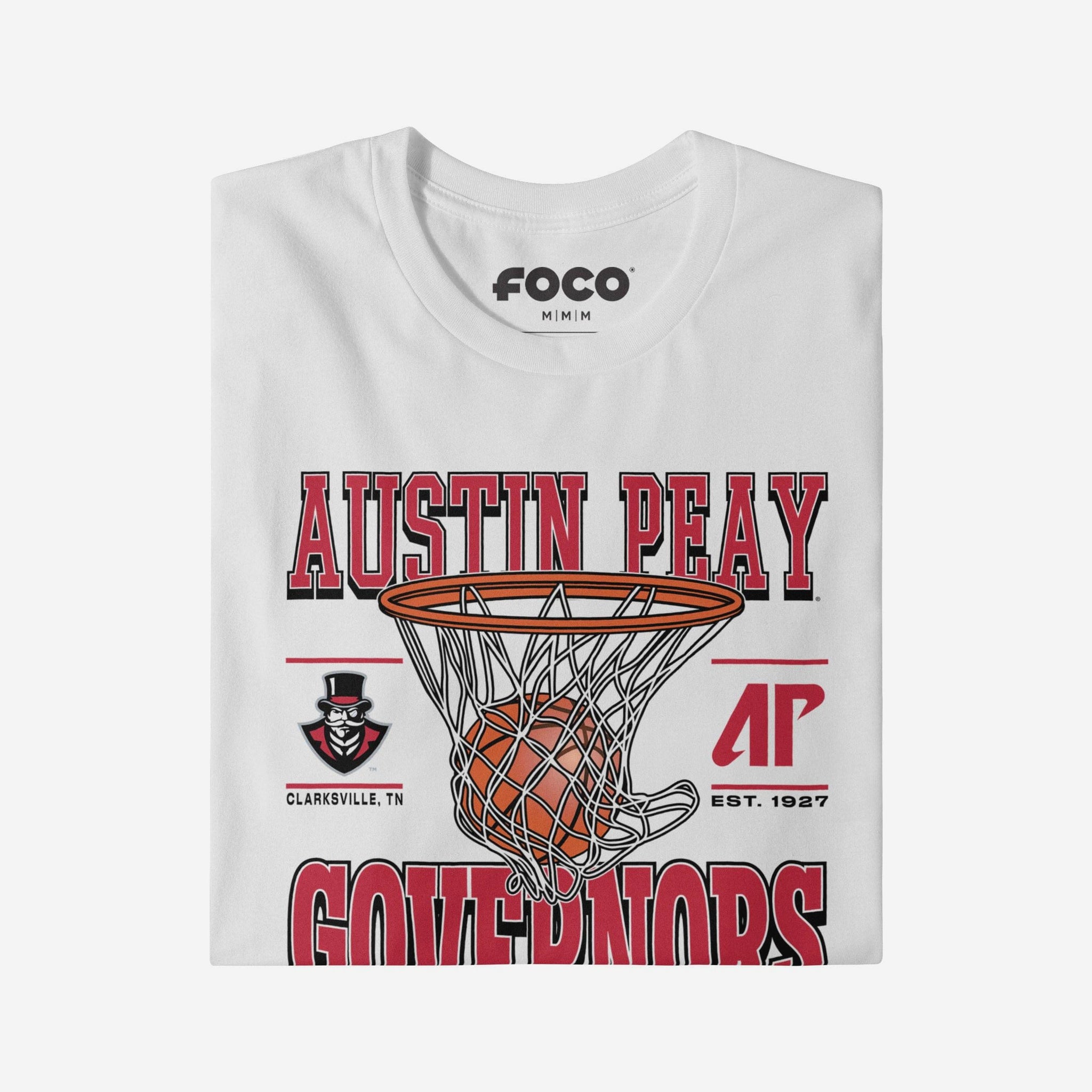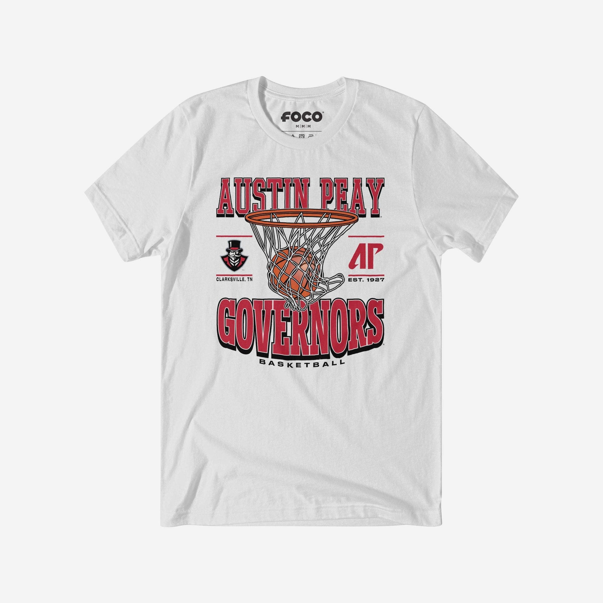 This top features a design that showcases your all-important team colors, a team logo display, a team wordmark name display, year of team establishment, and a basketball swishing through a net display meaning this t-shirt will prove your unmatched dedication to the Austin Peay Governors when you're at the game or watching at home. In other words, this graphic tee is about to be your new favorite teammate.