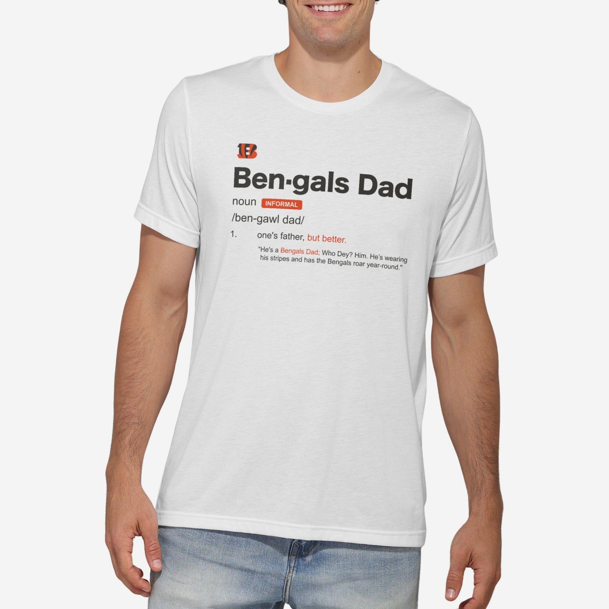 Dad: noun. Legend. Grill master. Superfan. Define your MVP with this Cincinnati Bengals Dad Definition T-Shirt.