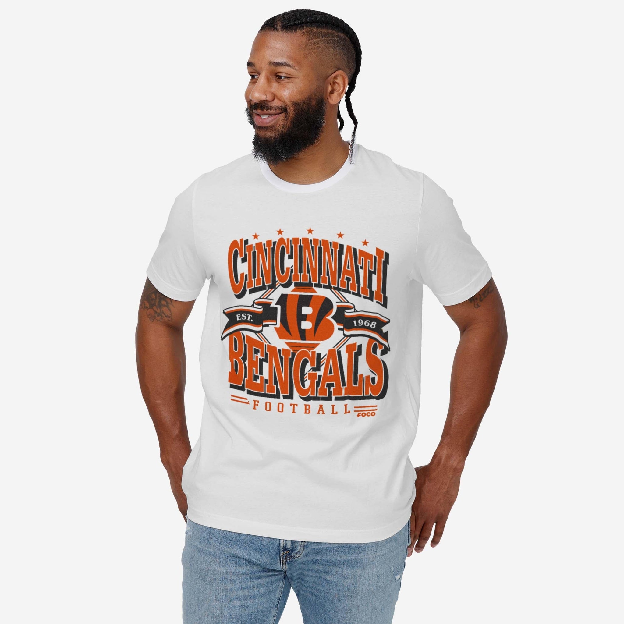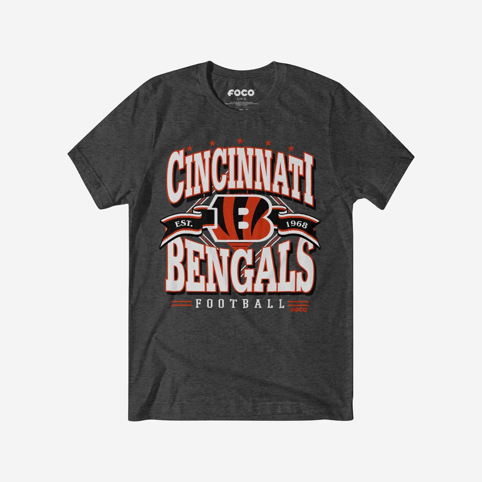 Tired of having to answer questions like, “Who’s your favorite team?” Here’s a shirt that will answer them for you. Show off your fandom and celebrate your team’s decades-spanning awesomeness with the Cincinnati Bengals Established Banner T-Shirt.
