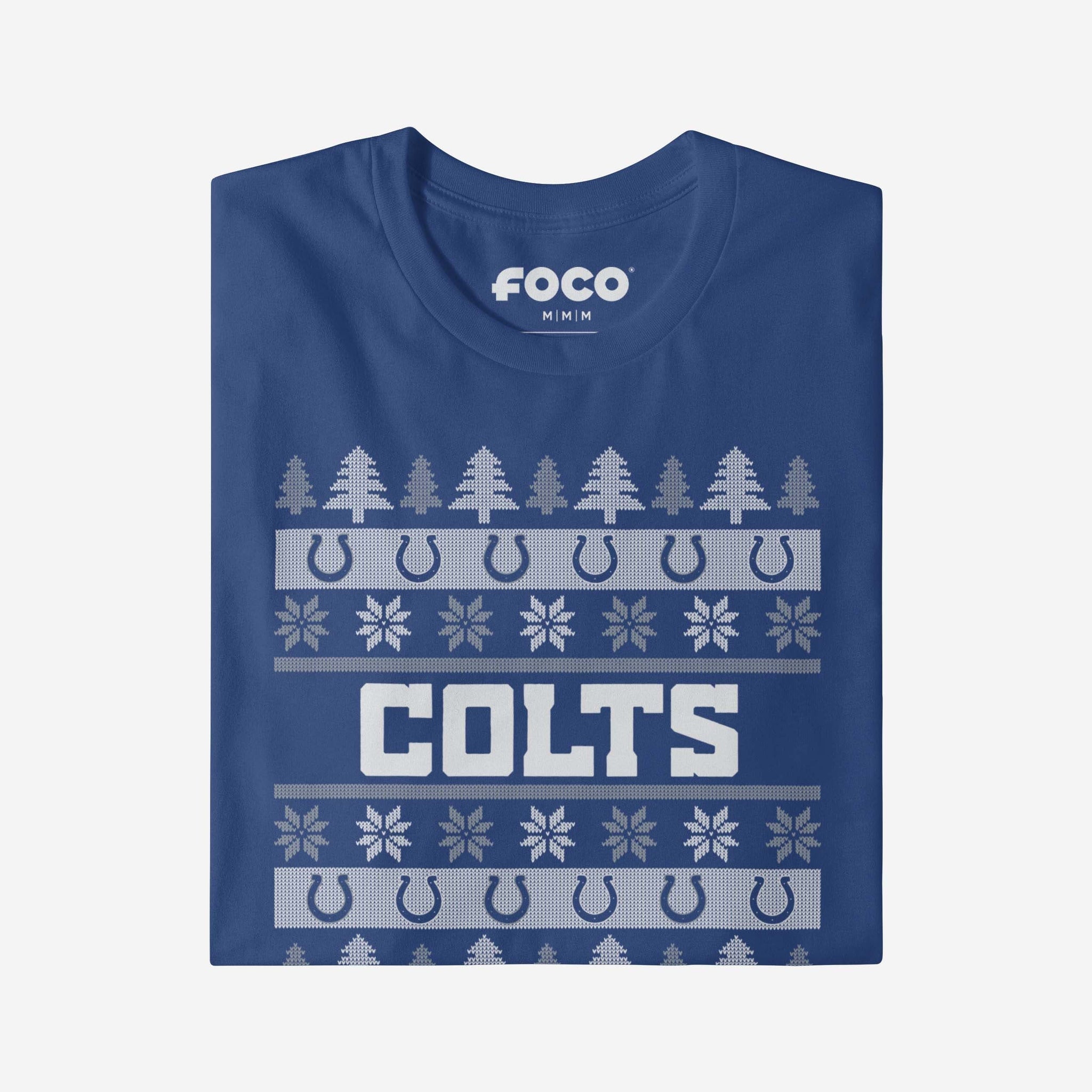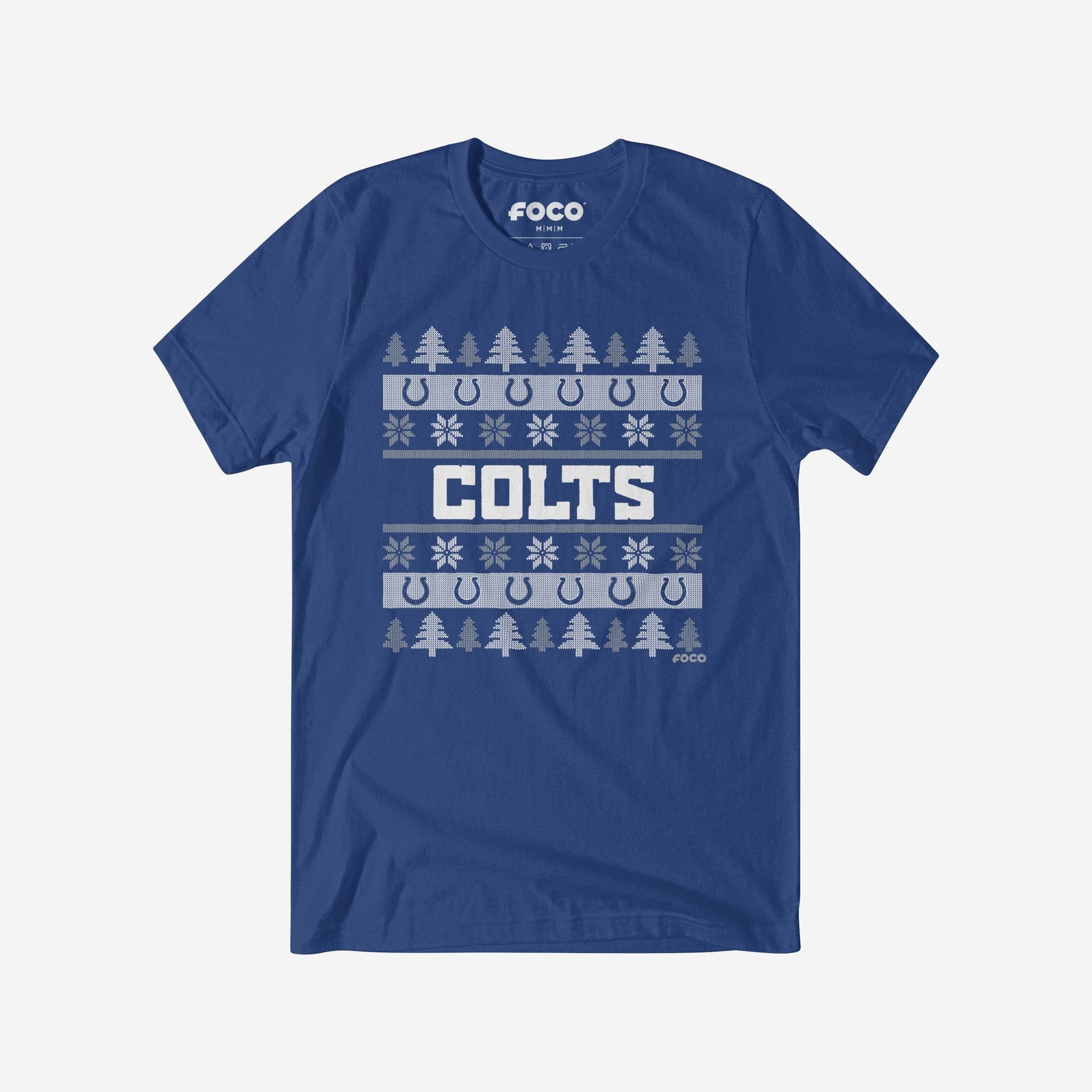 - Festive, team-colored design: This traditional t-shirt shows off the official Indianapolis Colts colors in an all-over team-colored design with winter tree and snowflake accents, so you can show your team spirit with pride.