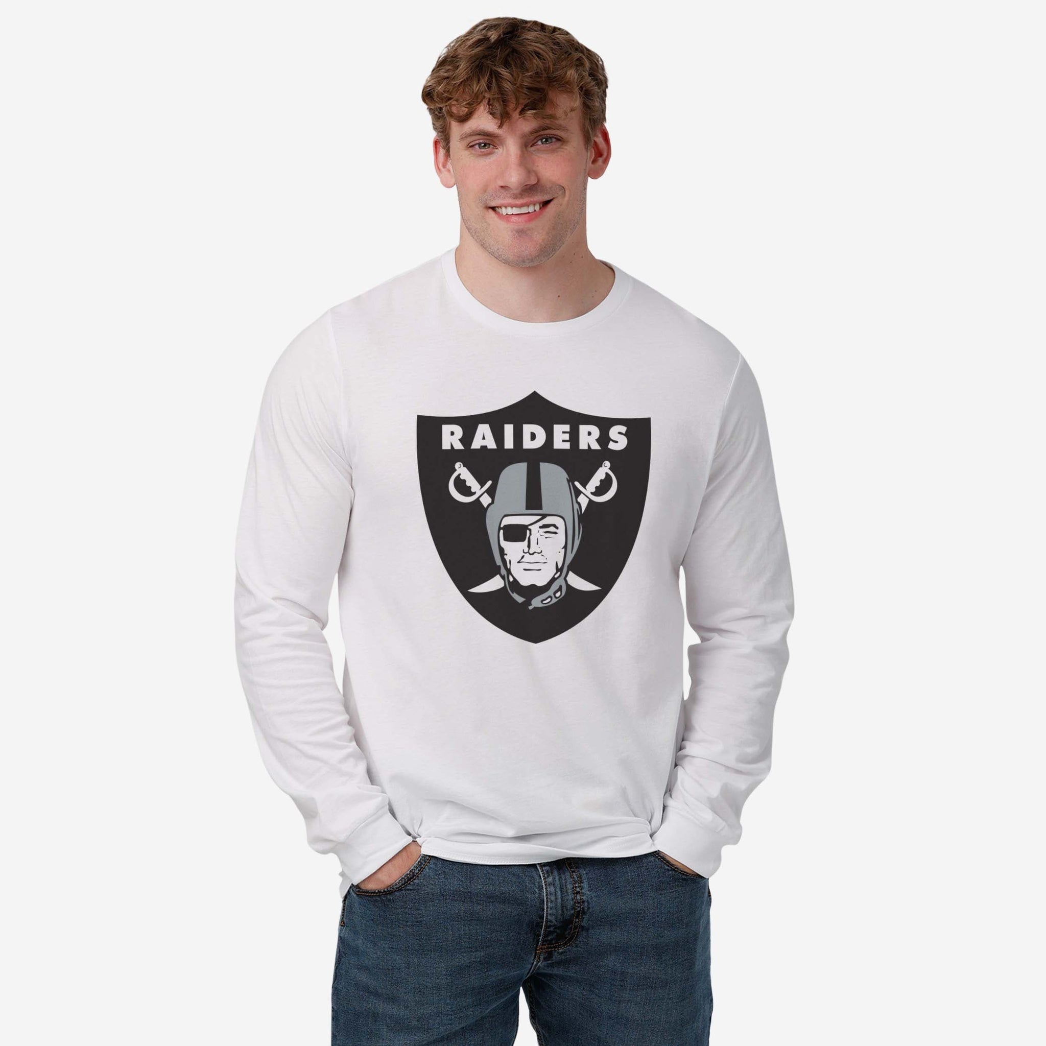 Las Vegas Raiders Primary Logo Long Sleeve T-Shirt FOCO White S - FOCO.com