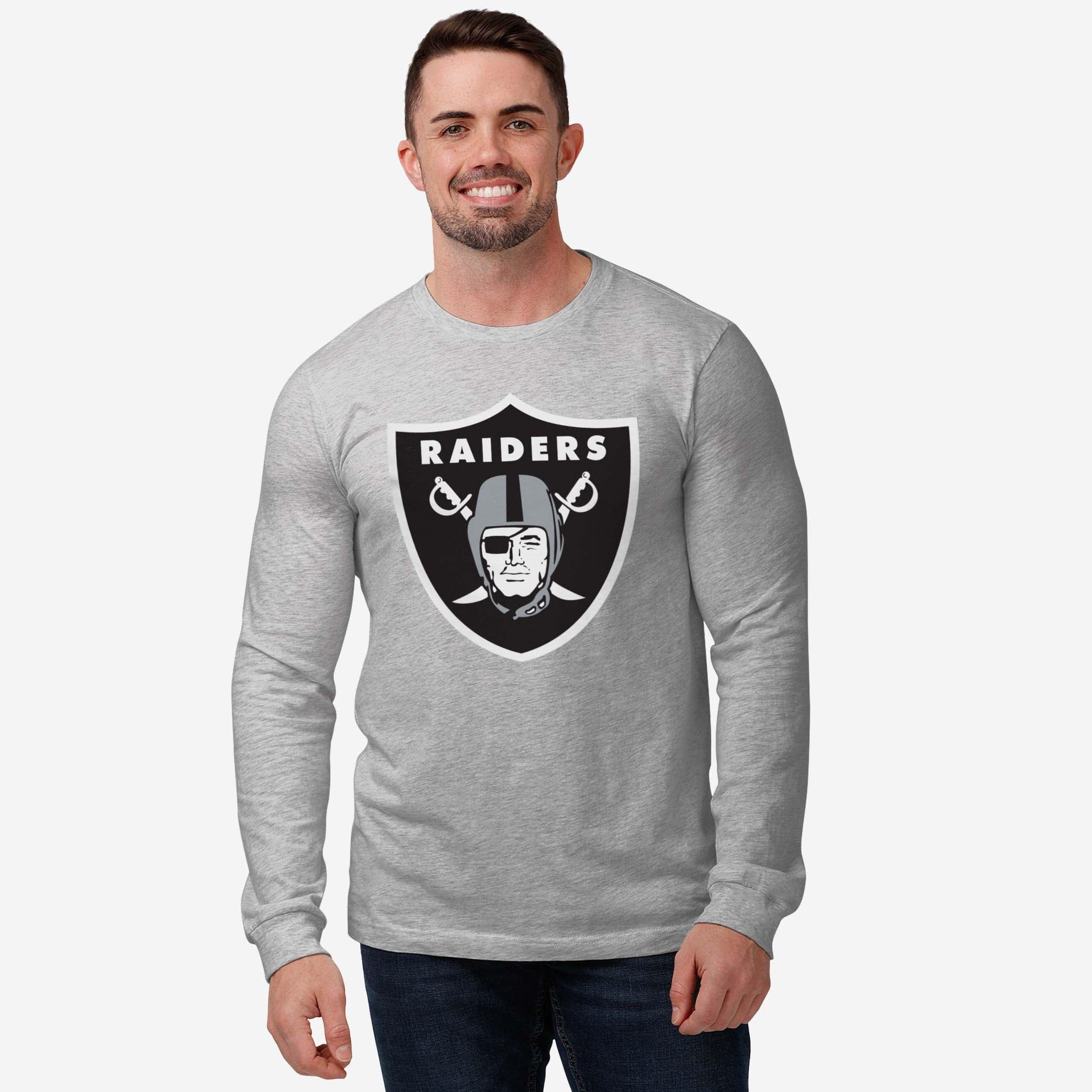 Las Vegas Raiders Primary Logo Long Sleeve T-Shirt FOCO Athletic Heather S - FOCO.com