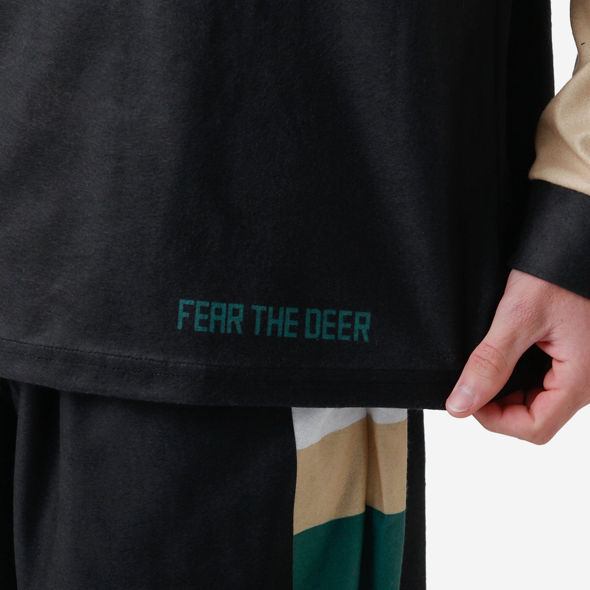 • FEAR THE DEER text display on shirt to make sure no one takes your fandom lightly