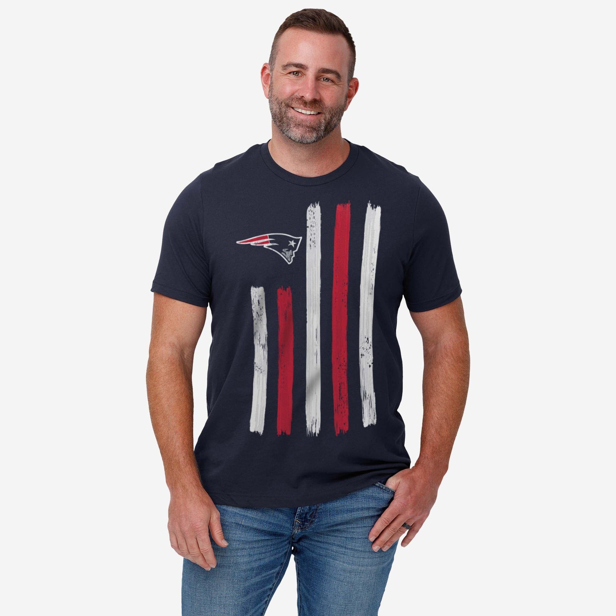You wave your team flag high on gameday. Now you can wear it too! Look good, feel good, and get ready to let everyone know that you’re the MVP of fan fashion with the New England Patriots Brushstroke Flag T-Shirt.