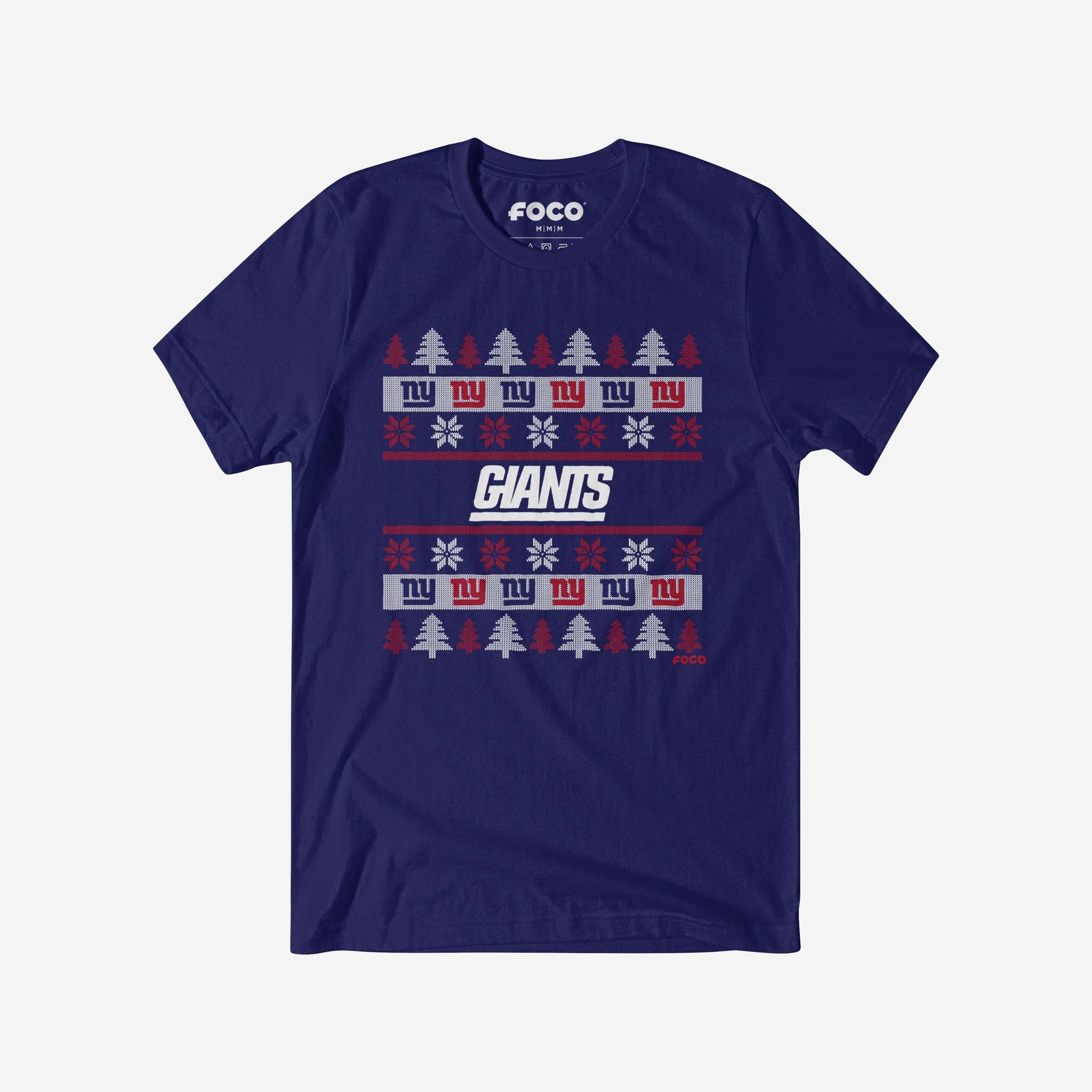 - Festive, team-colored design: This traditional t-shirt shows off the official New York Giants colors in an all-over team-colored design with winter tree and snowflake accents, so you can show your team spirit with pride.