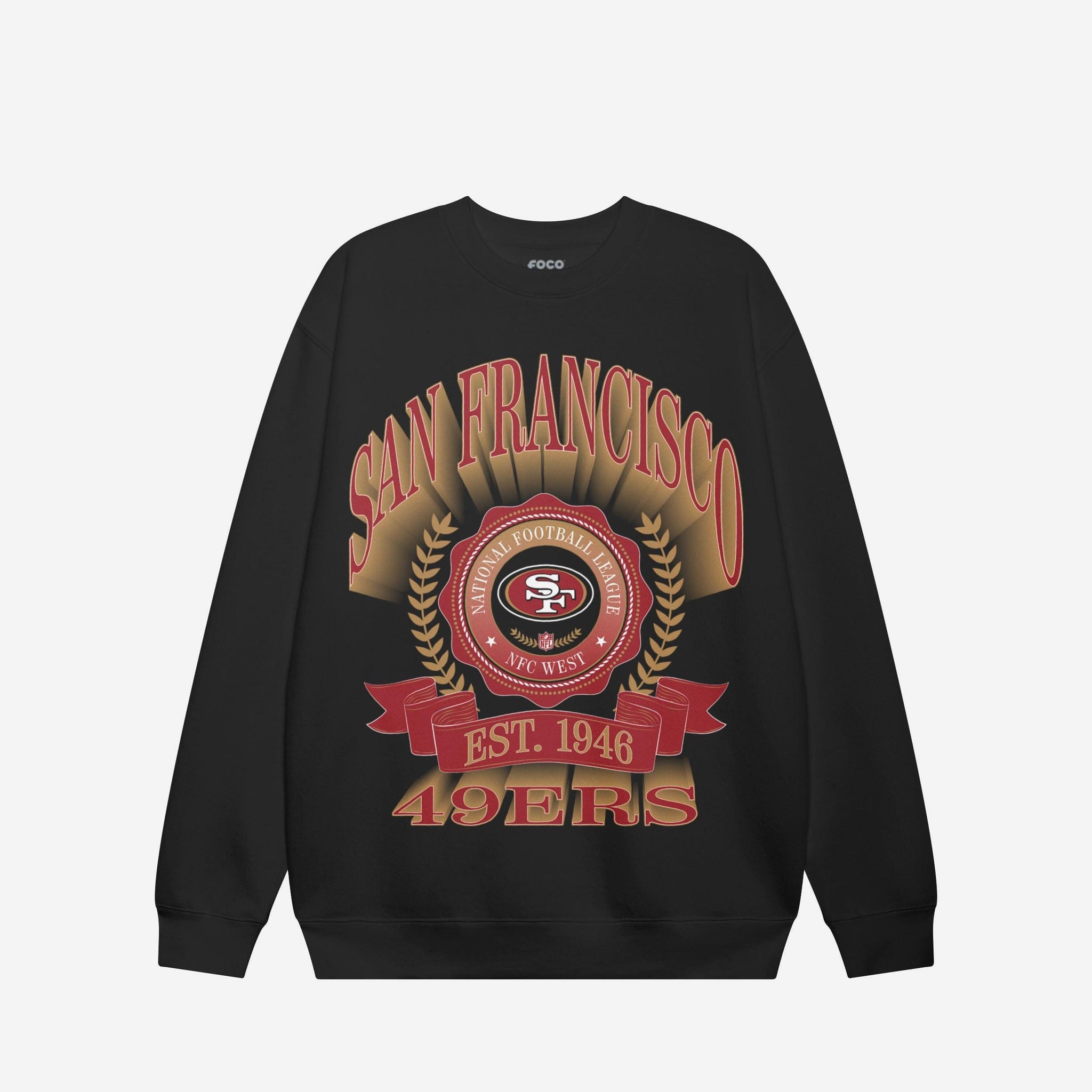 San Francisco 49ers Banner Crest Crew Neck Sweatshirt FOCO Black S - FOCO.com