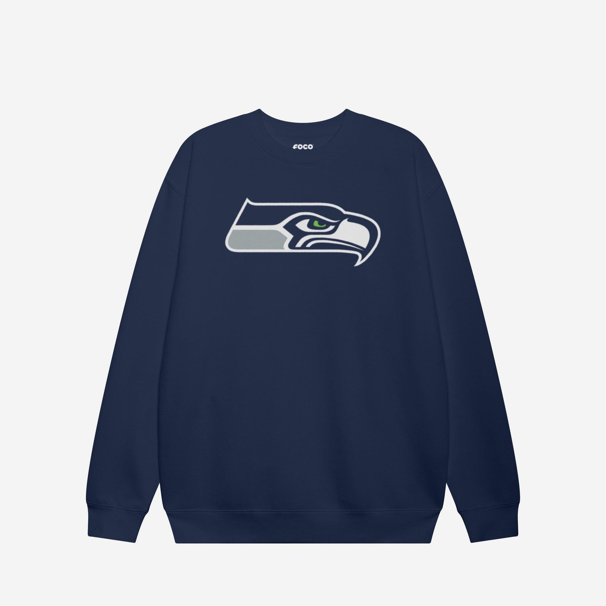 Seattle Seahawks Primary Logo Crew Neck Sweatshirt FOCO Navy S - FOCO.com