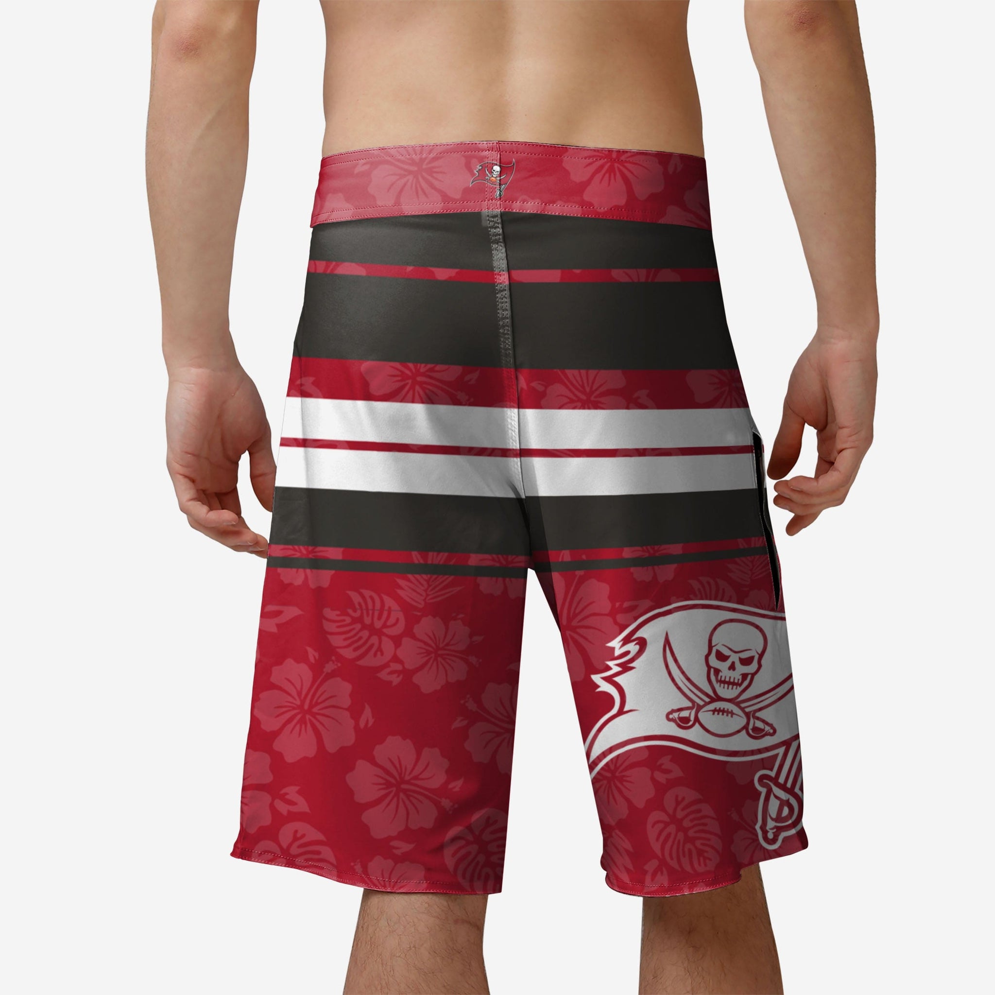 Tampa Bay Buccaneers Hibiscus Boardwalk Stripe Boardshorts FOCO S - FOCO.com