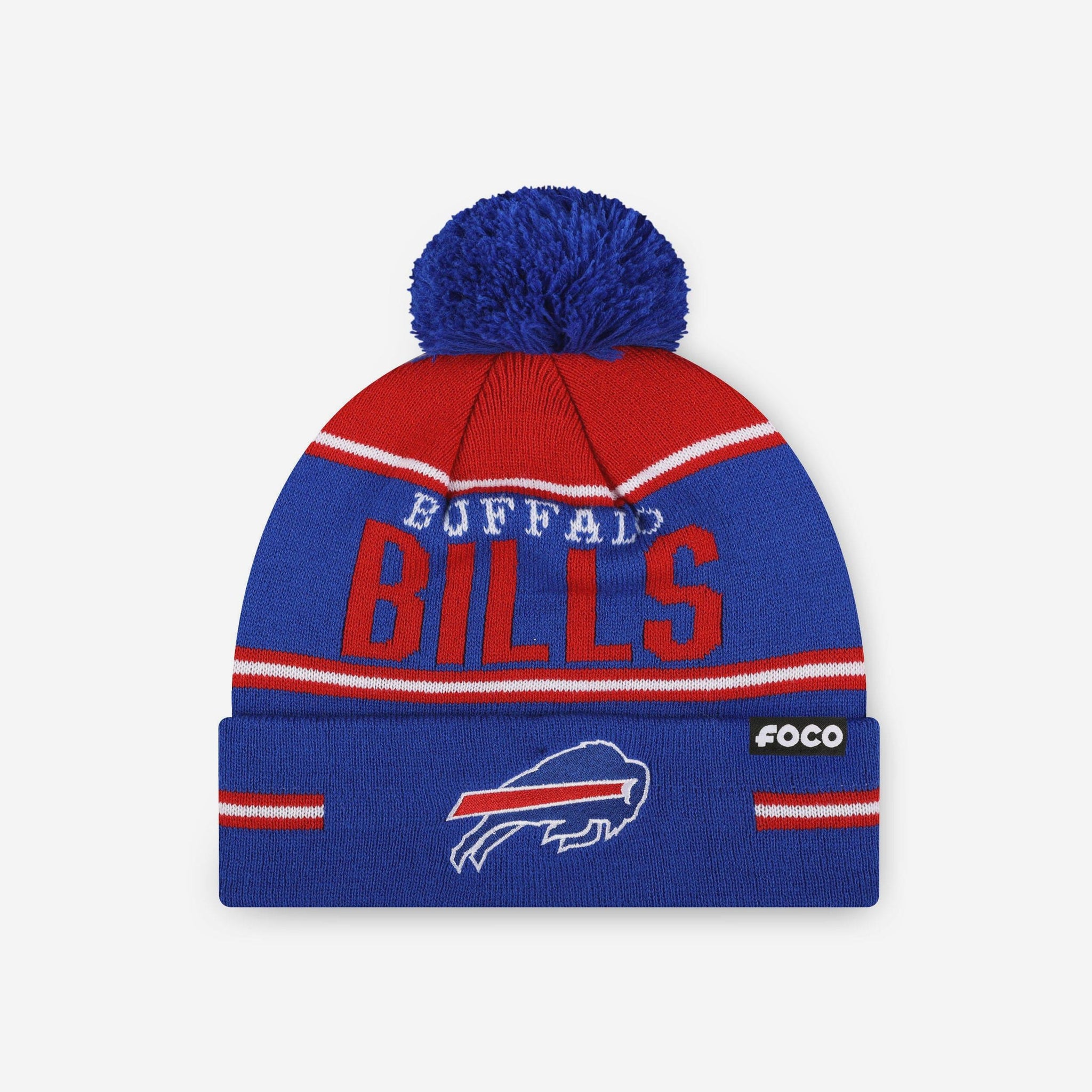 Buffalo Bills Big Wordmark Stripe Pom Beanie FOCO - FOCO.com