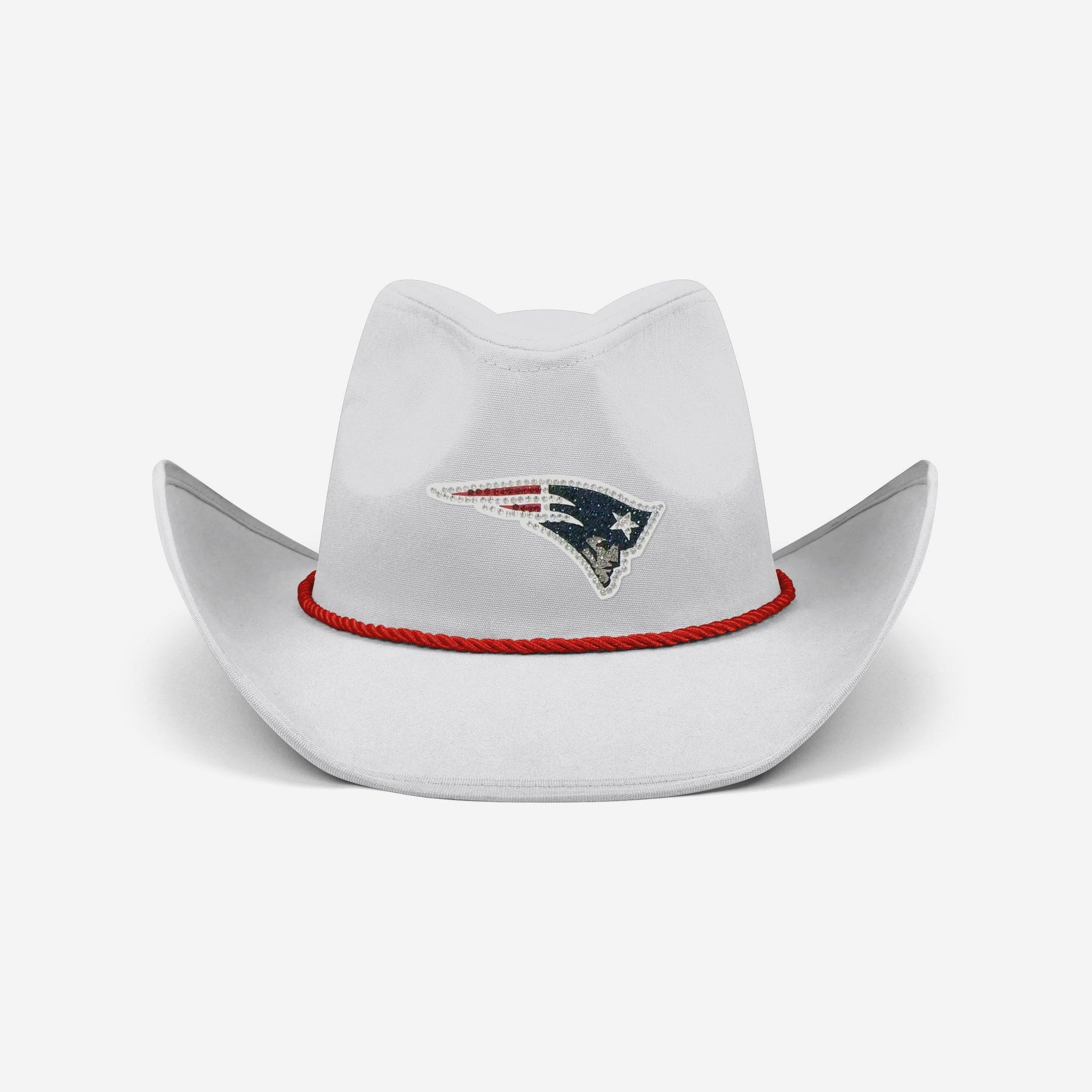 Howdy partner! Top off your fan fit and lasso some legendary team pride with this New England Patriots White Rhinestone Logo Cowboy Hat.