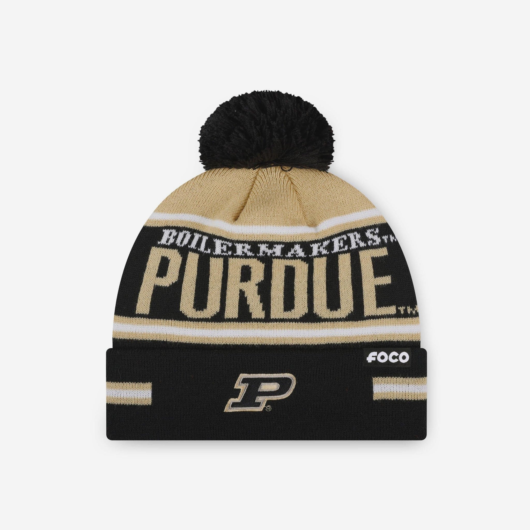 Purdue Boilermakers Big Wordmark Stripe Pom Beanie FOCO - FOCO.com