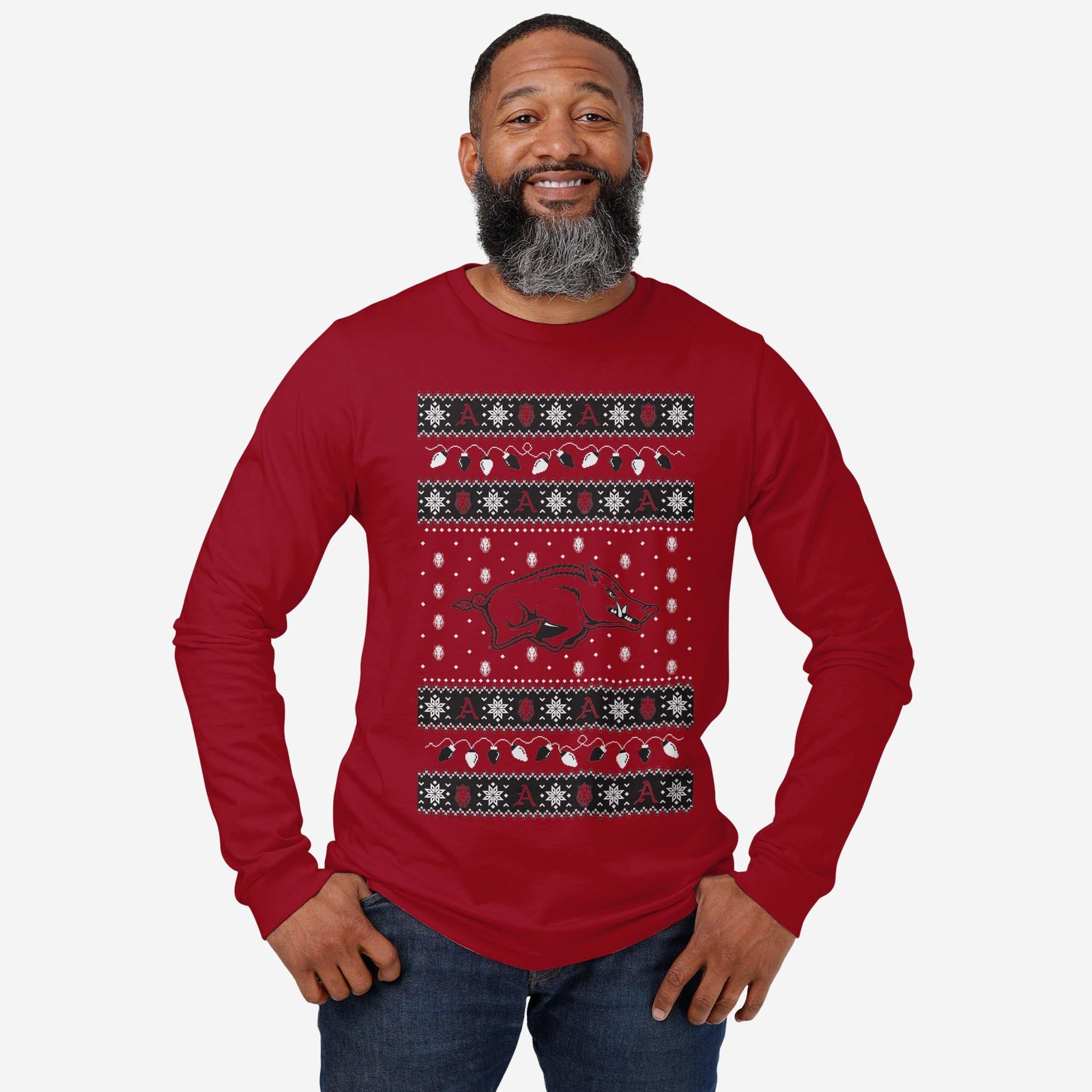Santa's making a list, and he’s checking it twice! Prove that you’re the nicest fan around with the Arkansas Razorbacks Holiday Lights Sweater Long Sleeve T-Shirt.