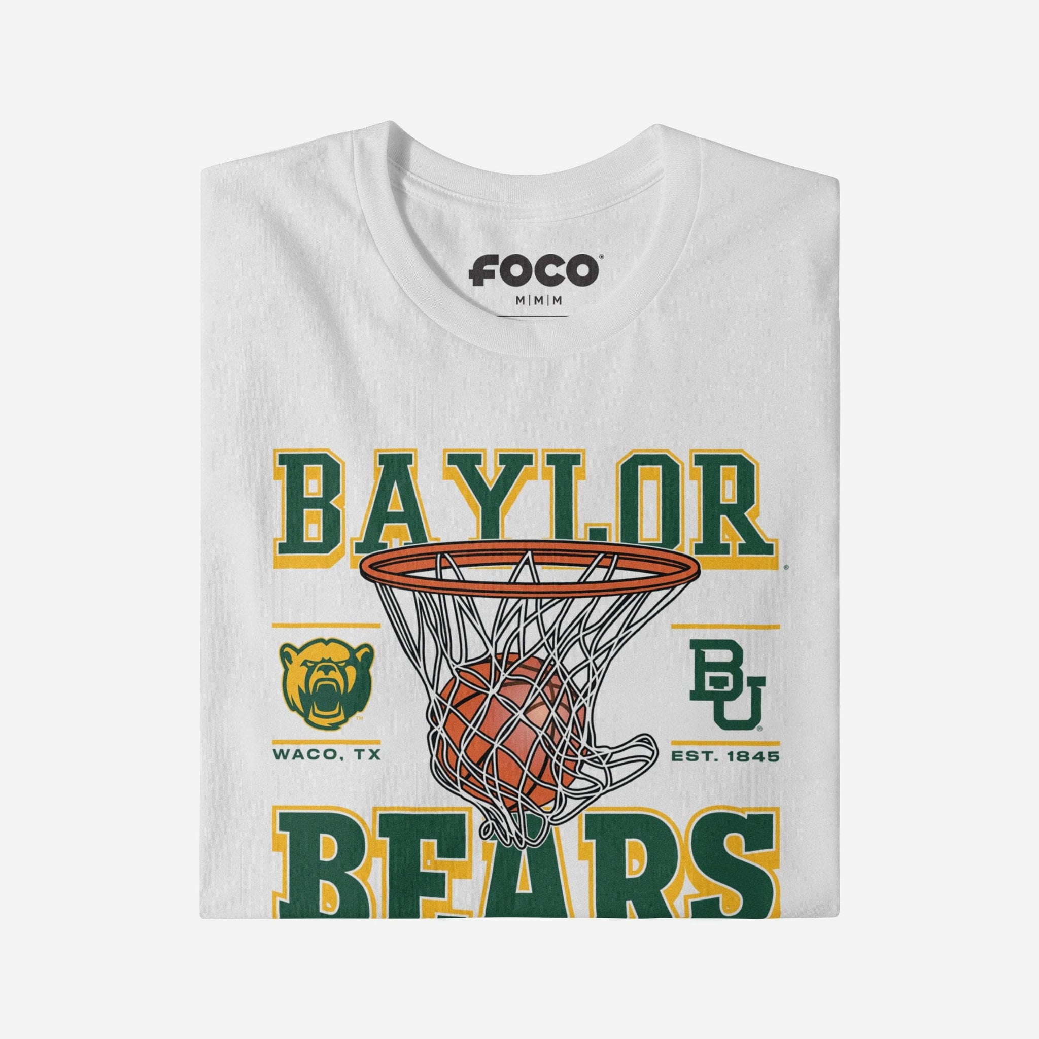 This top features a design that showcases your all-important team colors, a team logo display, a team wordmark name display, year of team establishment, and a basketball swishing through a net display meaning this t-shirt will prove your unmatched dedication to the Baylor Bears when you're at the game or watching at home. In other words, this graphic tee is about to be your new favorite teammate.