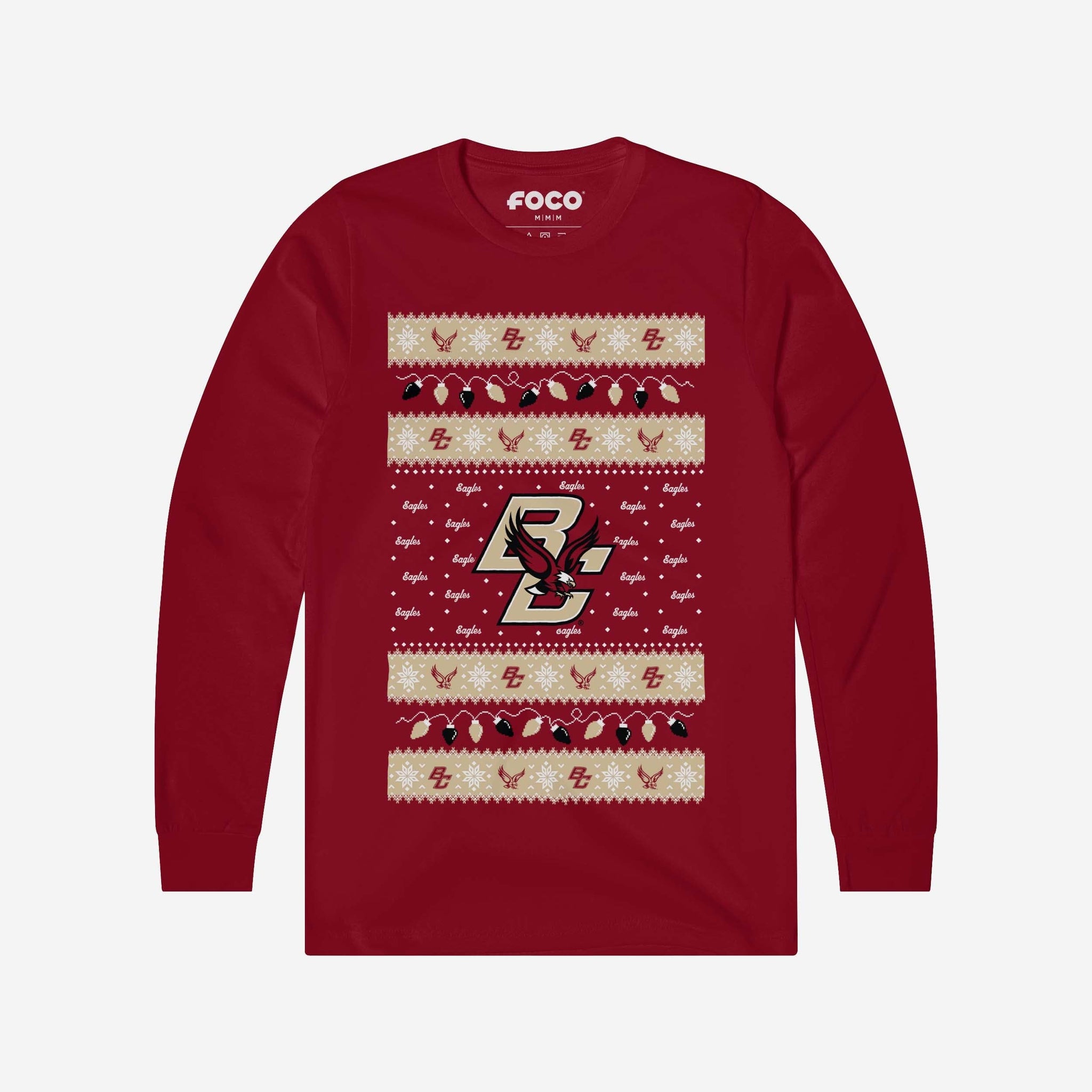 Santa's making a list, and he’s checking it twice! Prove that you’re the nicest fan around with the Boston College Eagles Holiday Lights Sweater Long Sleeve T-Shirt.