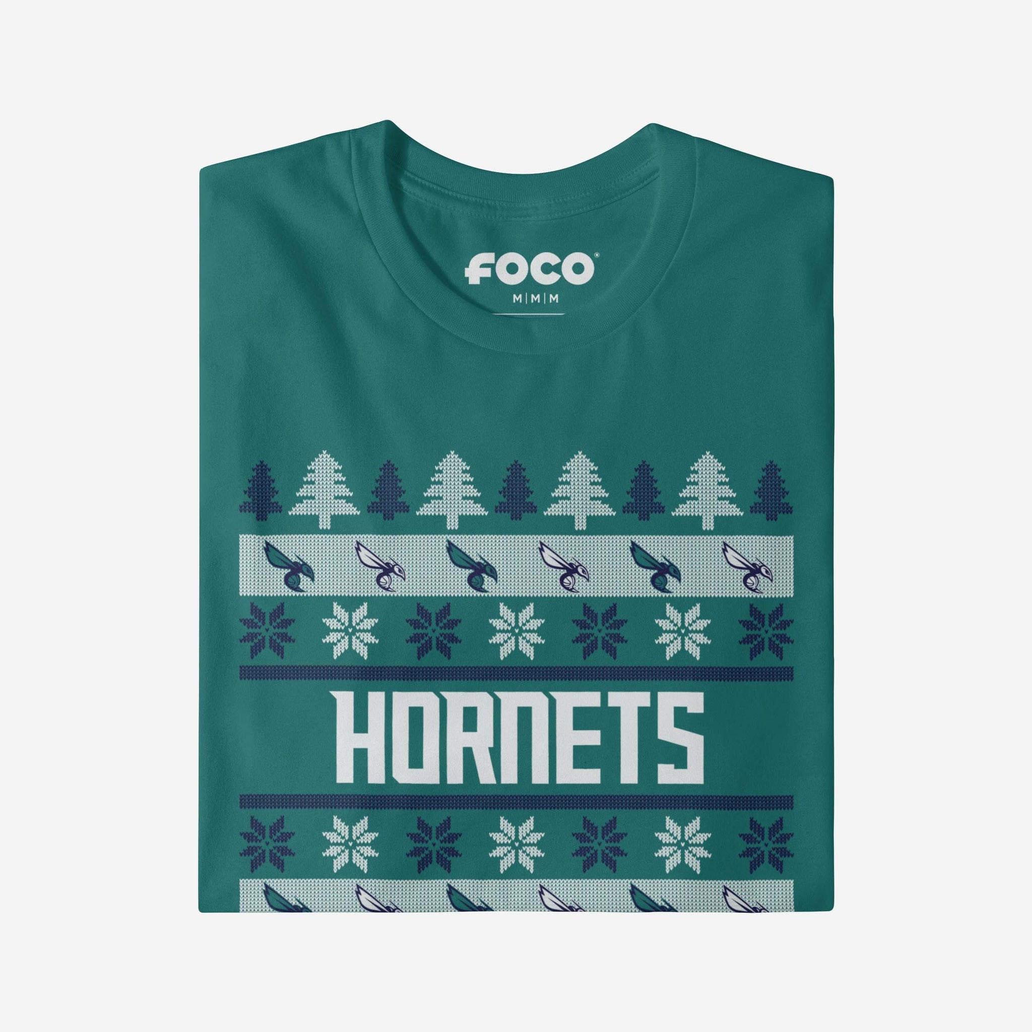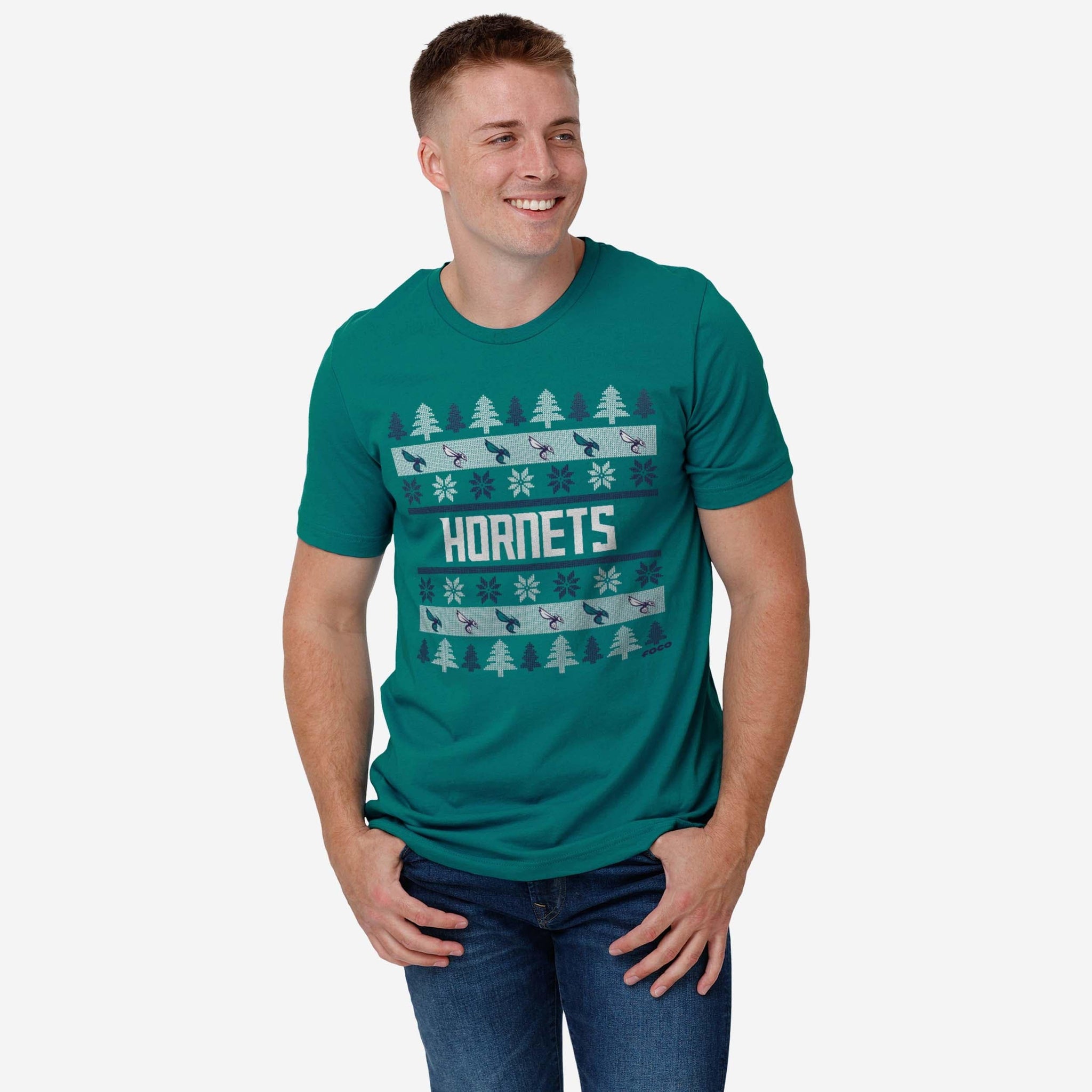 - Festive, team-colored design: This traditional t-shirt shows off the official Charlotte Hornets colors in an all-over team-colored design with winter tree and snowflake accents, so you can show your team spirit with pride.