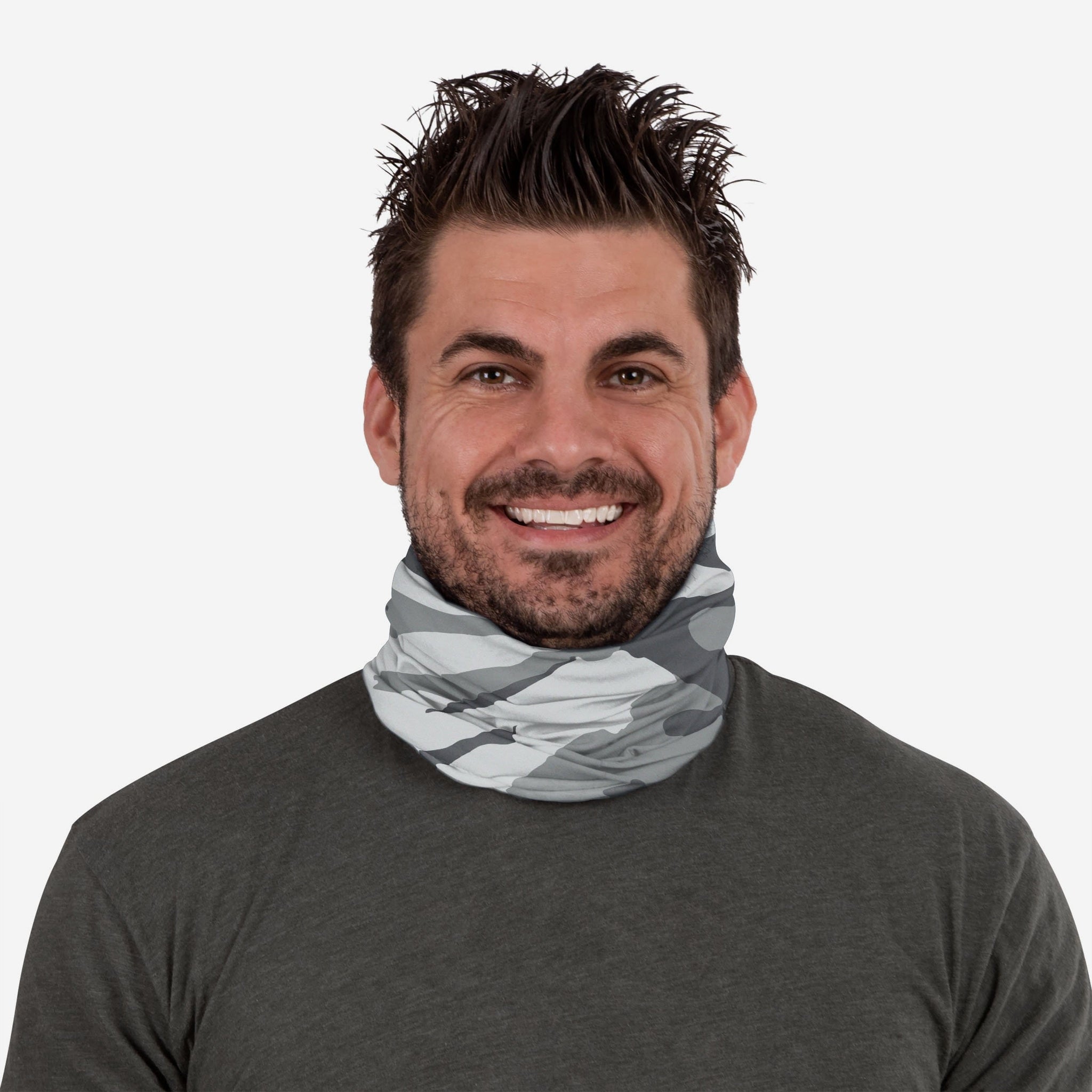 This Grey Camo Gaiter Scarf will keep your neck covered with lightweight, breathable material whenever you put it on.