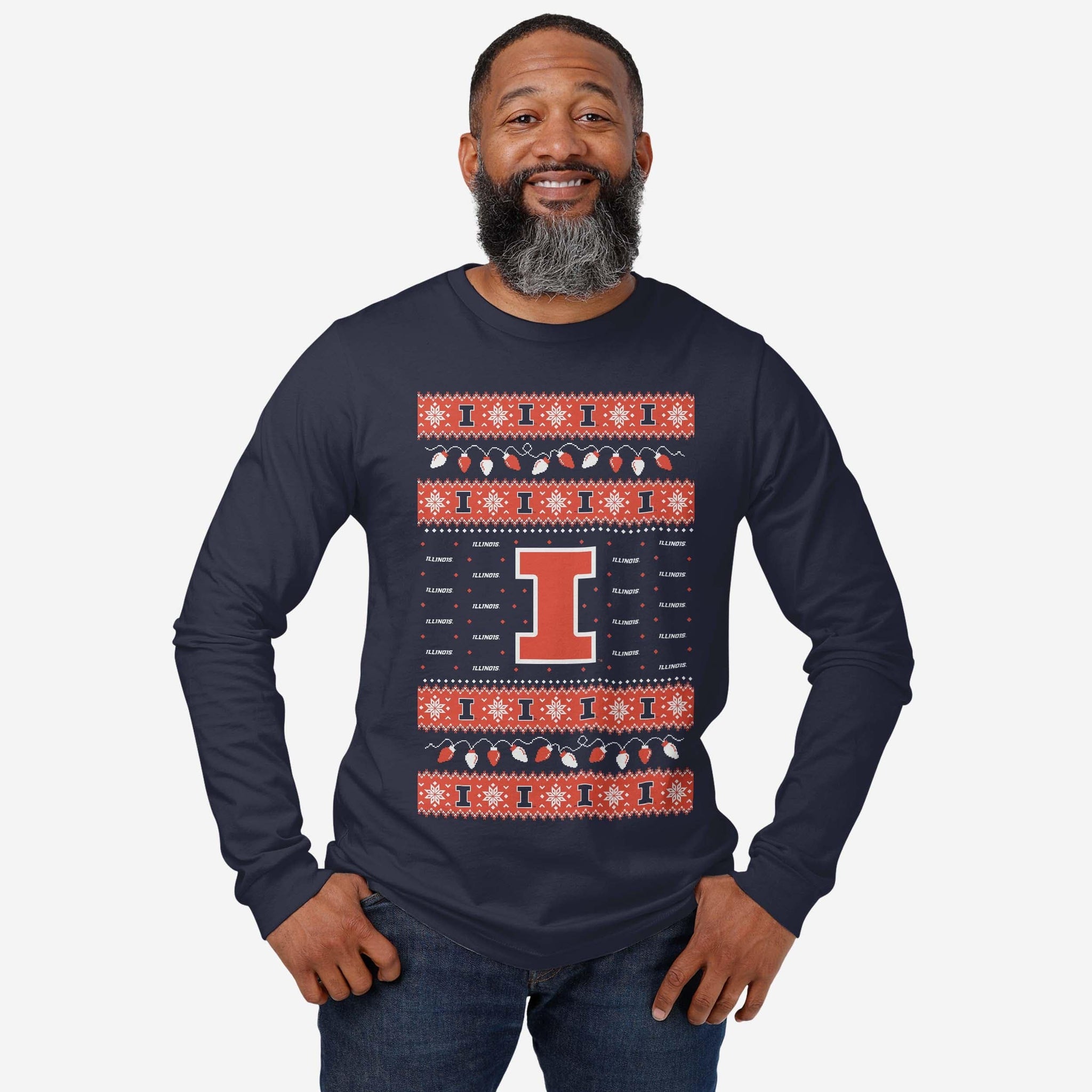 Santa's making a list, and he’s checking it twice! Prove that you’re the nicest fan around with the Illinois Fighting Illini Holiday Lights Sweater Long Sleeve T-Shirt.