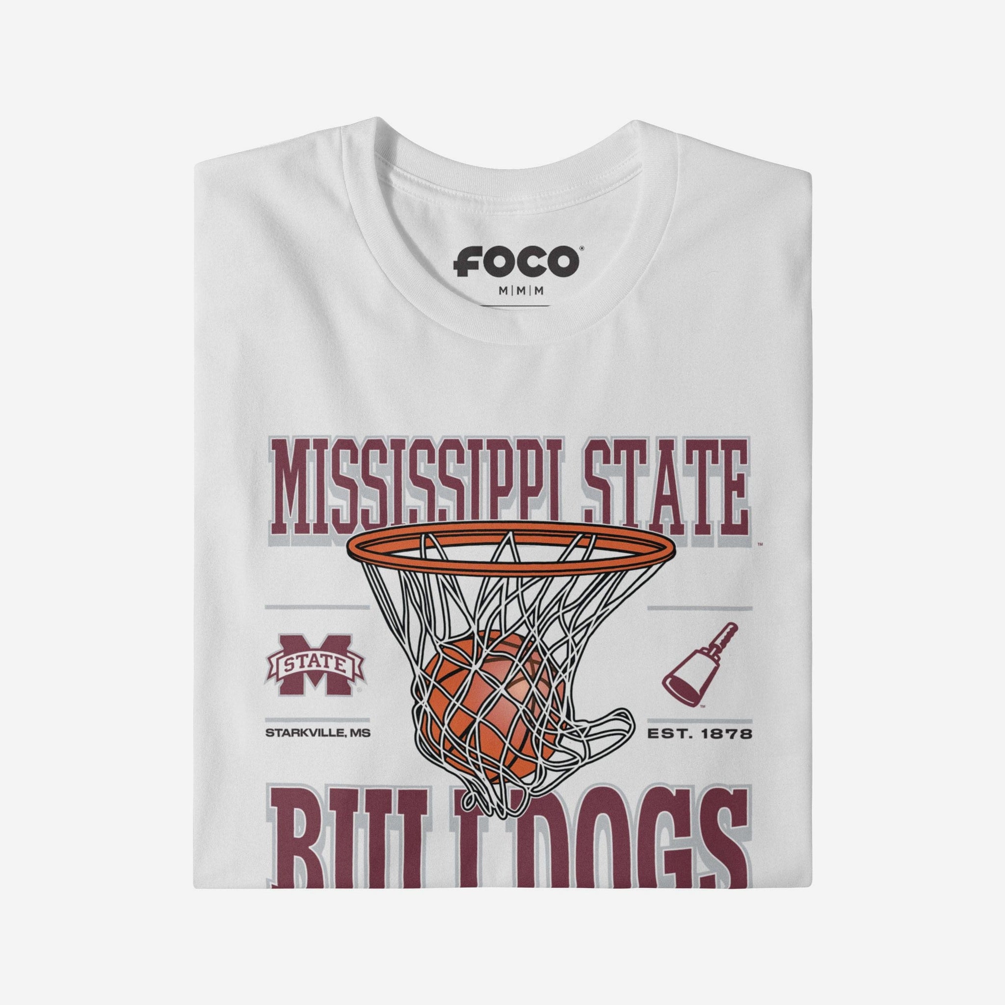 This top features a design that showcases your all-important team colors, a team logo display, a team wordmark name display, year of team establishment, and a basketball swishing through a net display meaning this t-shirt will prove your unmatched dedication to the Mississippi State Bulldogs when you're at the game or watching at home. In other words, this graphic tee is about to be your new favorite teammate.
