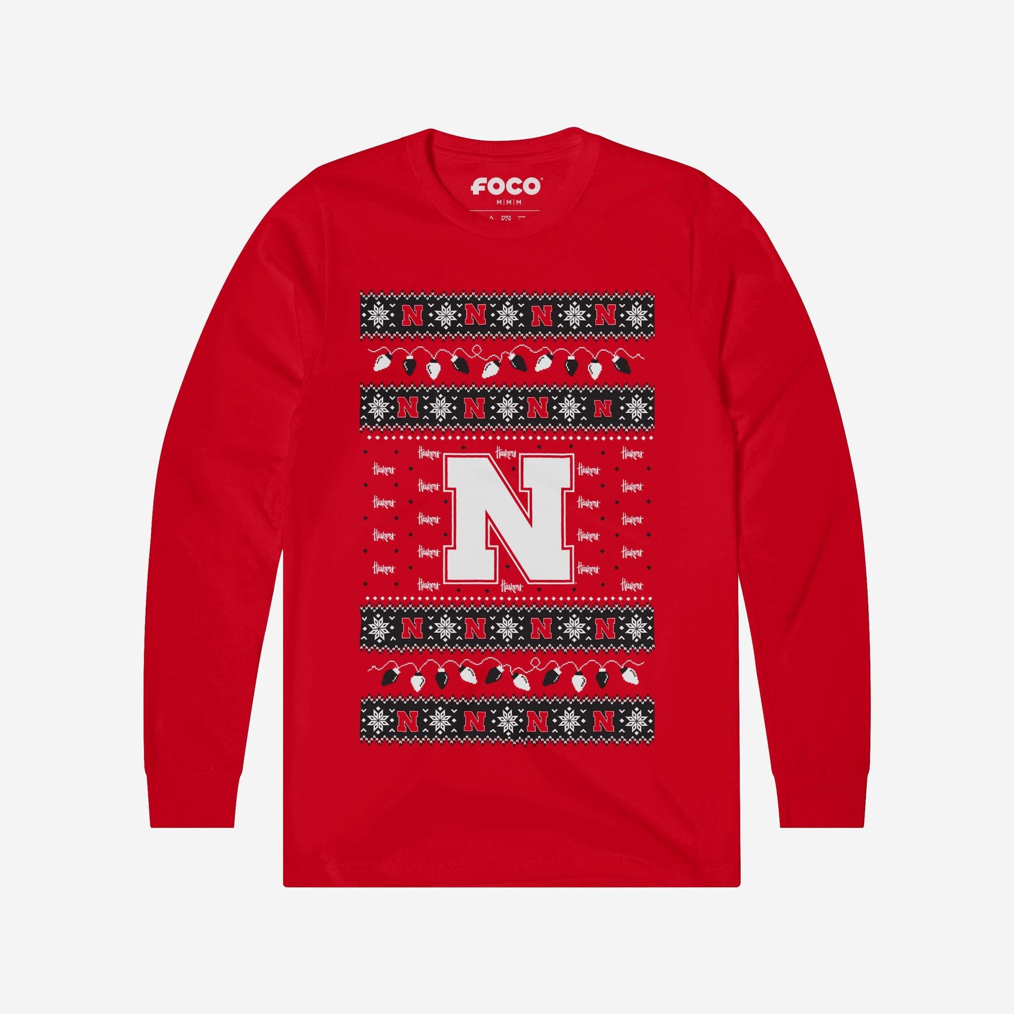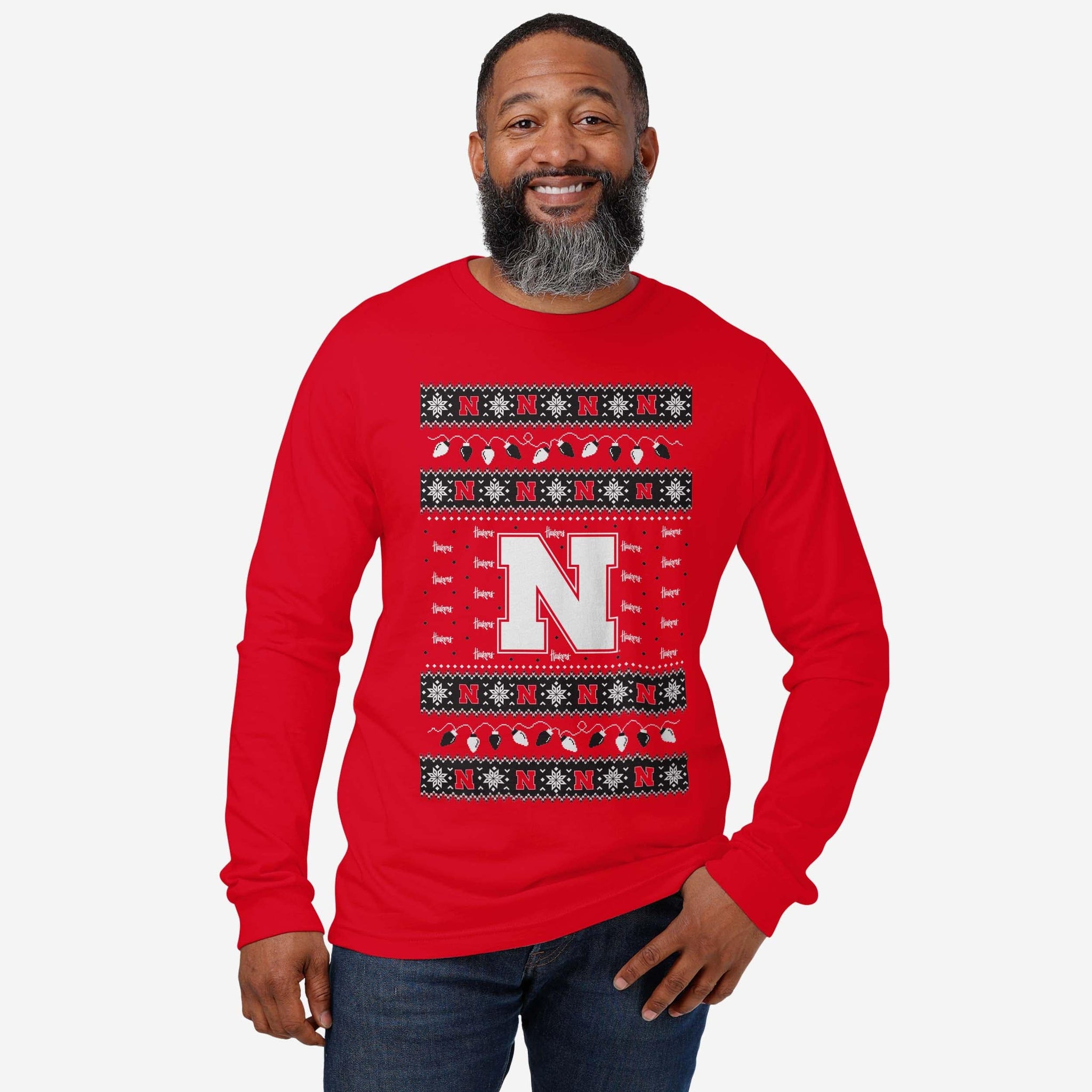 Santa's making a list, and he’s checking it twice! Prove that you’re the nicest fan around with the Nebraska Cornhuskers Holiday Lights Sweater Long Sleeve T-Shirt.